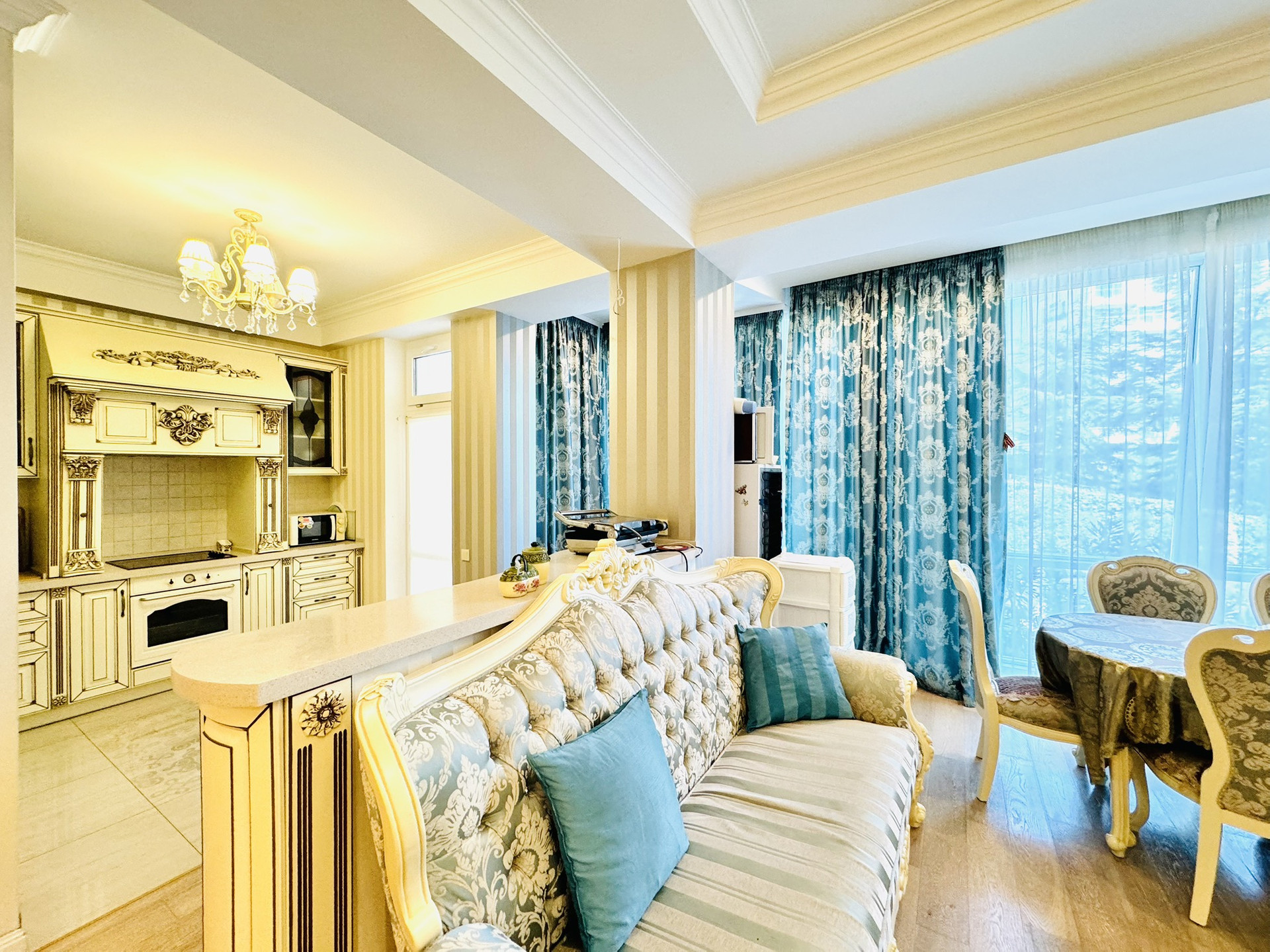 Квартира общей площадью 130 кв. м., расположена в одном их лучших комплексов ЮБК, в поселке Гурзуф.