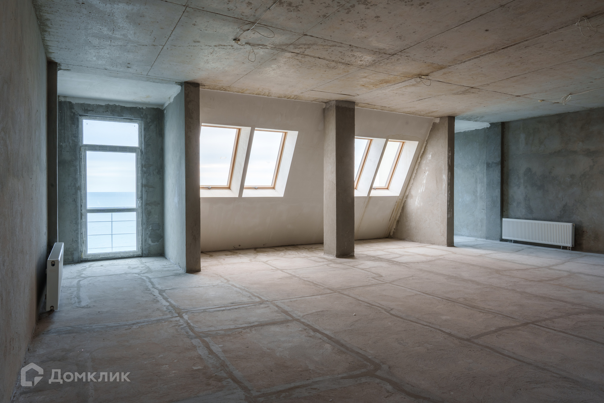 Апартаменты свободной планировки с прямым видом на море и горы.