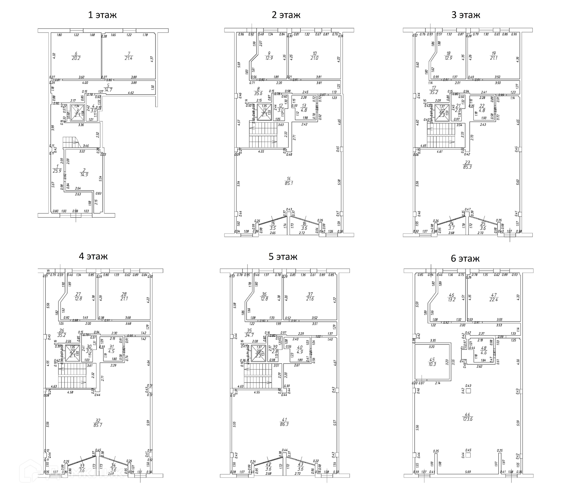 Продаются 23-х комнатные апартаменты на берегу Черного моря в Гурзуфе, с 1-го по 6-й этаж включительно, площадью 964 кв.м. в корпусе Б.