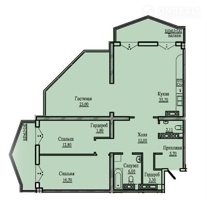 2 спальни с выходом на балкон