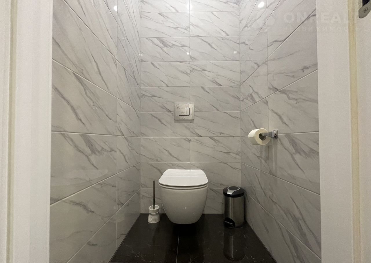 4-й этаж современного 13-этажного комплекса, 2-комнатная квартира общей площадью 63 кв.м, планировка включает отдельную спальню, просторную кухню-гостиную с зоной столовой и большим салоном, южную террасу, холл, ванную комнату и гостевой санузел.