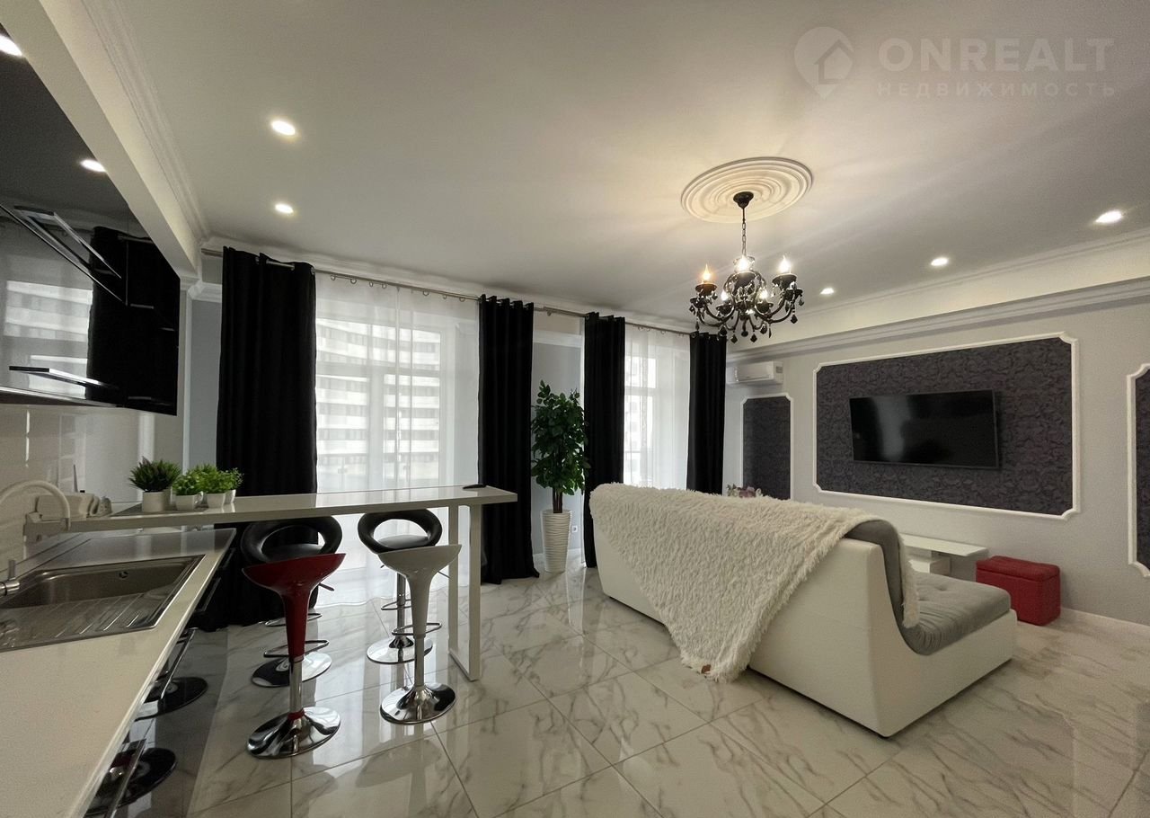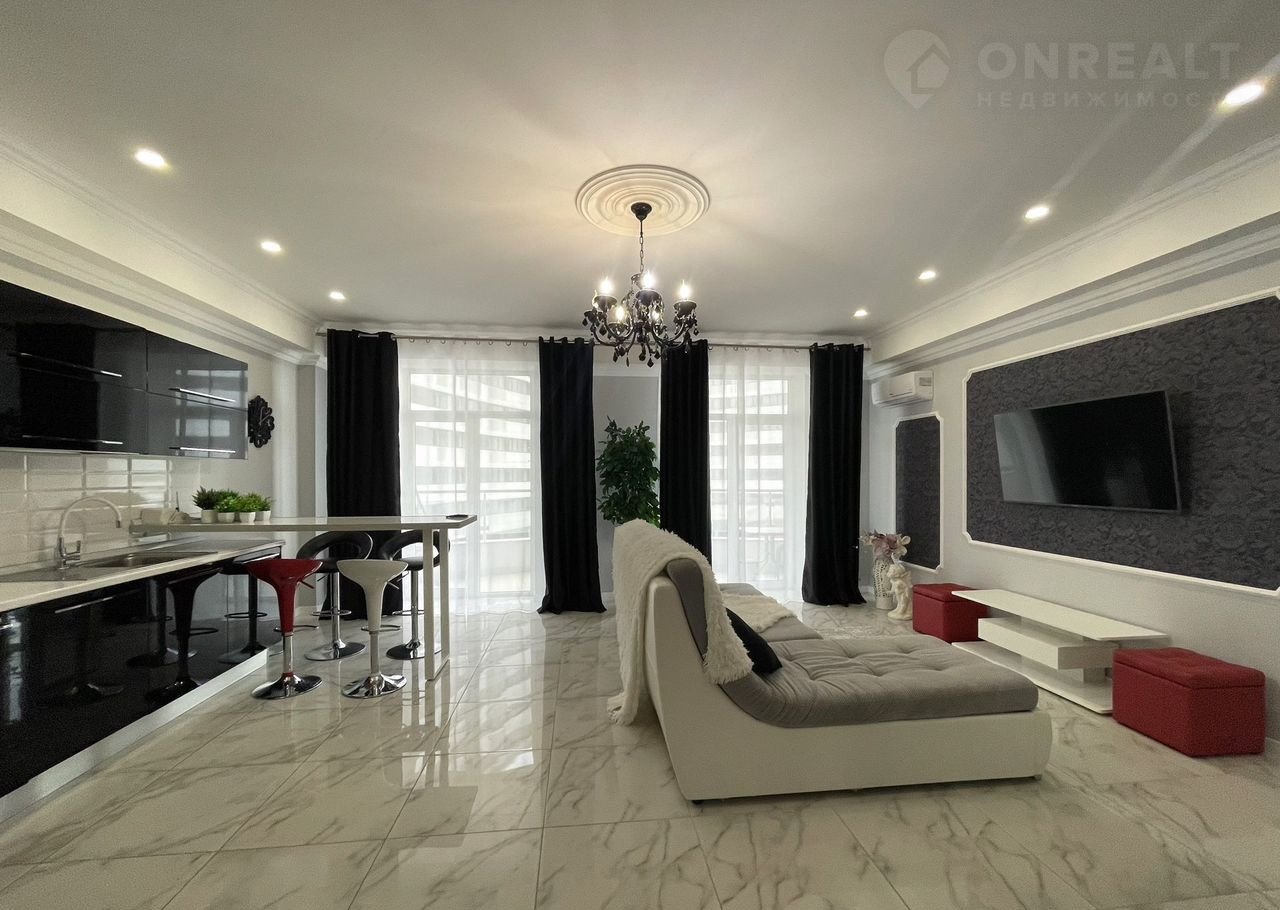 Централизованные коммуникации, кондиционирование, высокие потолки и панорамное остекление, авторский дизайн и качественная внутренняя отделка в едином стиле, квартира меблирована и оснащена всей, необходимой для комфортного проживания, техникой. С террасы открывается вид на море, визитную карточку Гурзуфа – гору Аю-Даг, живописный поселок и современный ЖК «Гурзуф Ривьера».