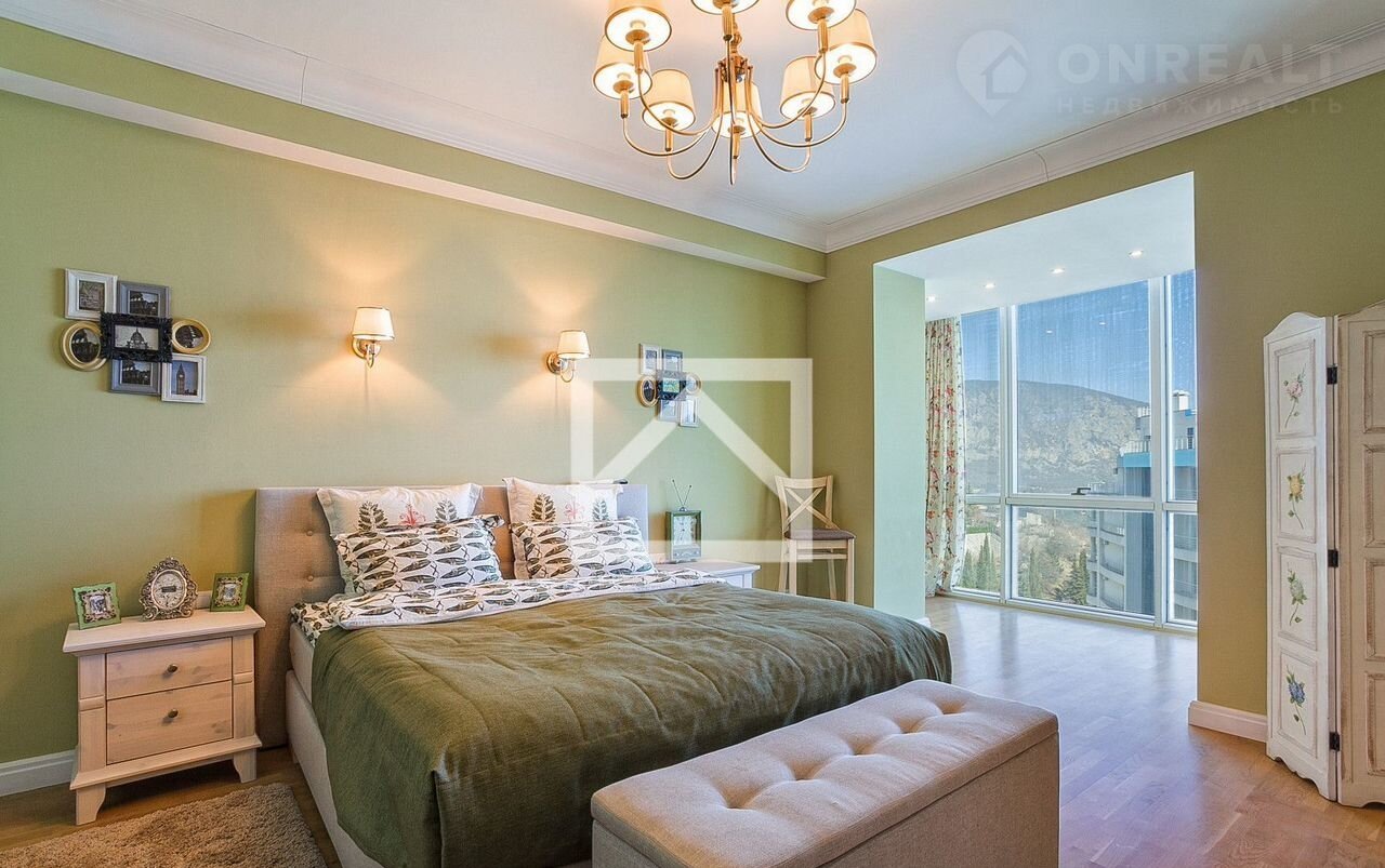 +спальня с видом на море и горы,