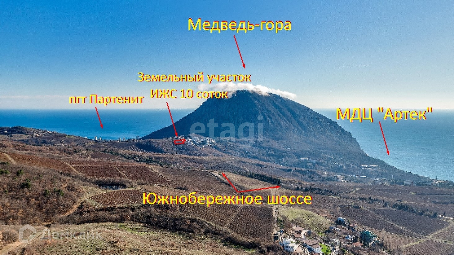 Видовой участок в поселке Новая деревня 2 (рядом элитный поселок Новая деревня, заповедная территория горы Аю-Даг, поселок Гурзуф). Экологически чистый район, коммуникации: вода 35 м. от участка, 200 метров до МДЦ Артек (вид на весь лагерь). На панораме ЖК Ривьера. С правой стороны участка красивый ручей, дальше за ручьем виноградники. Участок выведен в натуру, поставлен на кадастровый учет и зарегистрирован в Госреестре РФ от 09.2015. Имеется вся техническая документация и проект землеустройства. Есть ГПЗУ.