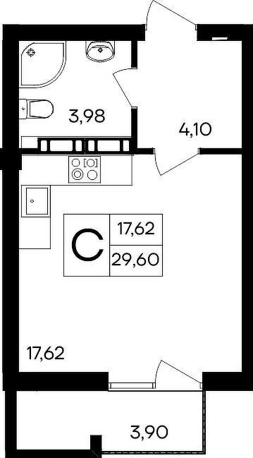 Общая площадь 29.6 м2