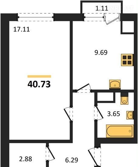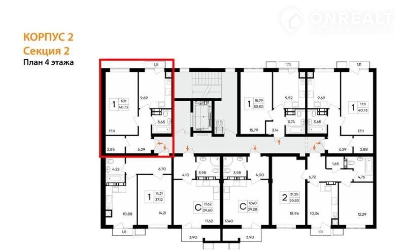 Общая площадь 40.7 м2