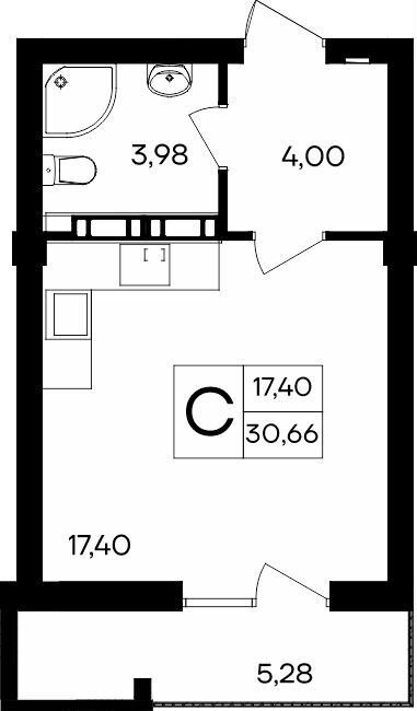 Общая площадь 30.7 м2