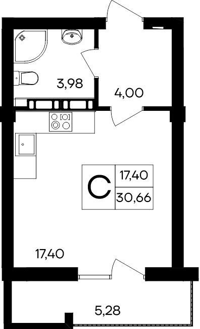 Общая площадь 30.7 м2
