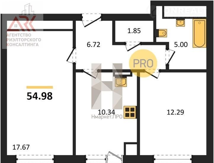 Общая площадь 55 м2