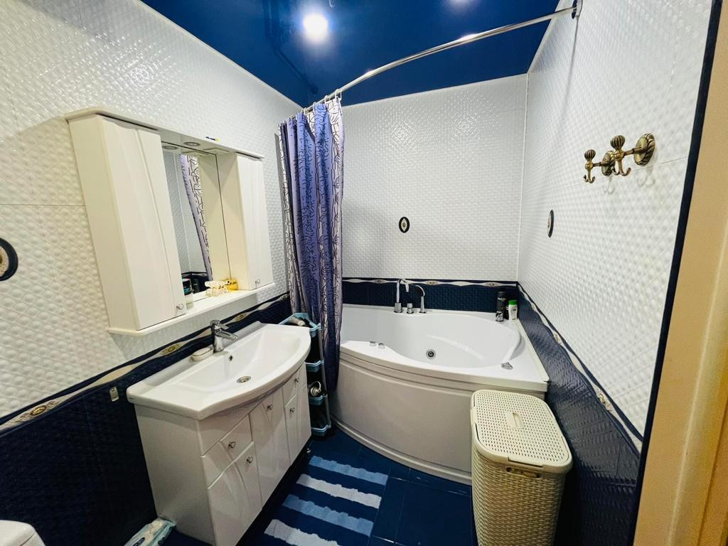 Из  достоинств квартиры: полы керамогранит /паркетная доска; красивые подвесные потолки, все подоконники из мрамора, сан. узел в кафеле (Испания), установлен многофункциональный джакузи, балкон с выносом и большим кладовым шкафом.