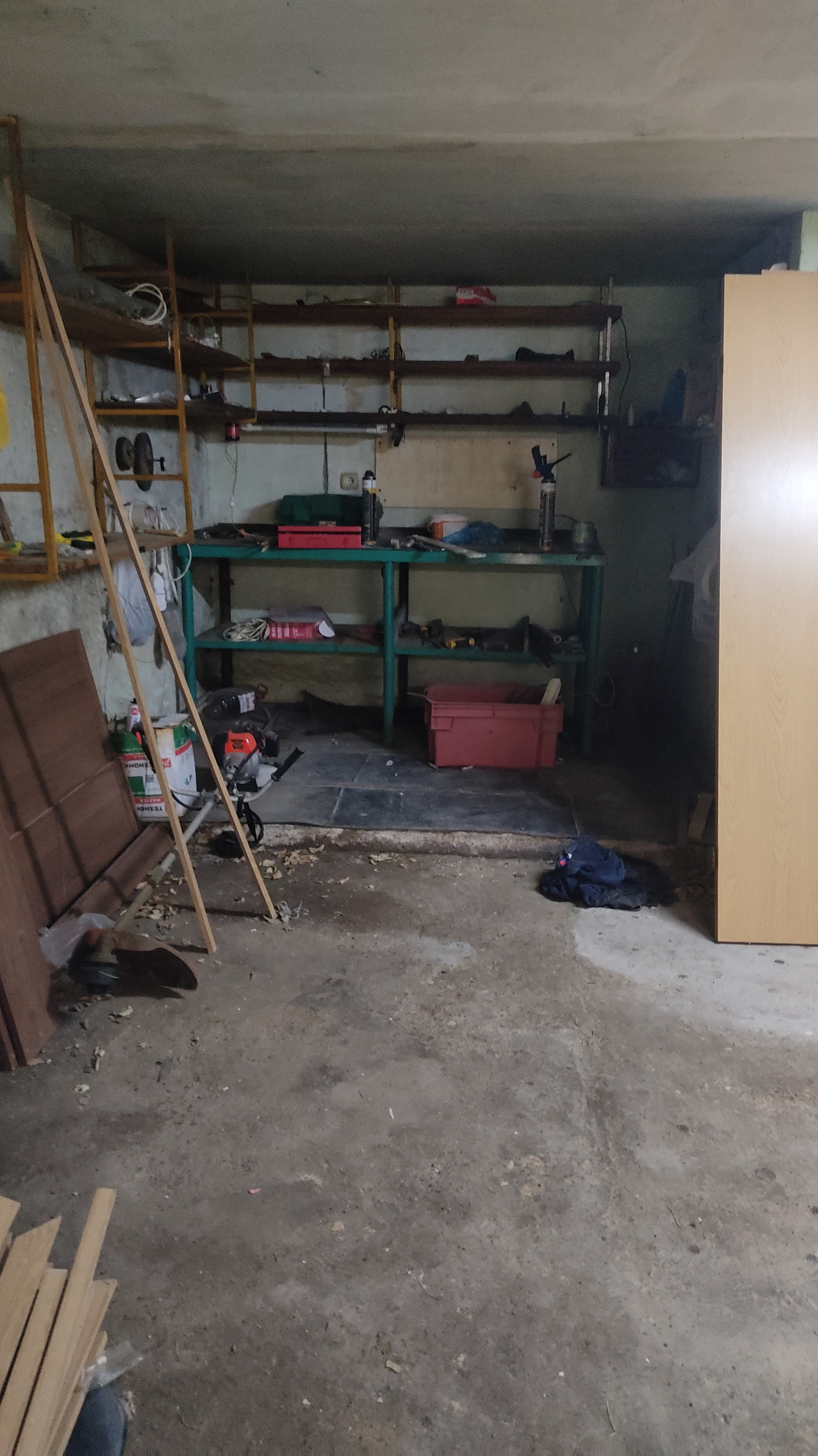 Гараж в доме. Подробнее при осмотре. Высокий мансардный четвертый этаж.
