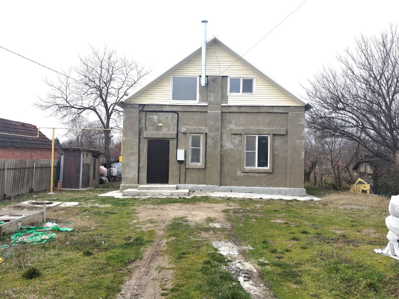 На участке 12 соток множество плодовых деревьев и установлена бытовка 4х5. Дом строился не на продажу, а для себя, поэтому все узлы строительства максимально качественные с большим запасом прочности, именно поэтому этот объект недвижимости нельзя напрямую сравнивать с домами от застройщиков, это небо и земля в качестве и количестве используемых материалов.