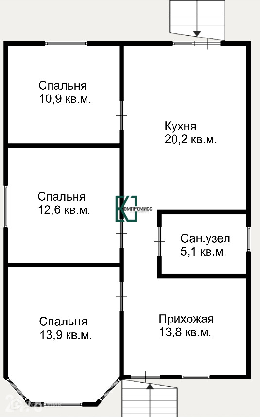 комнаты, кухня, сан. узел, прихожая.