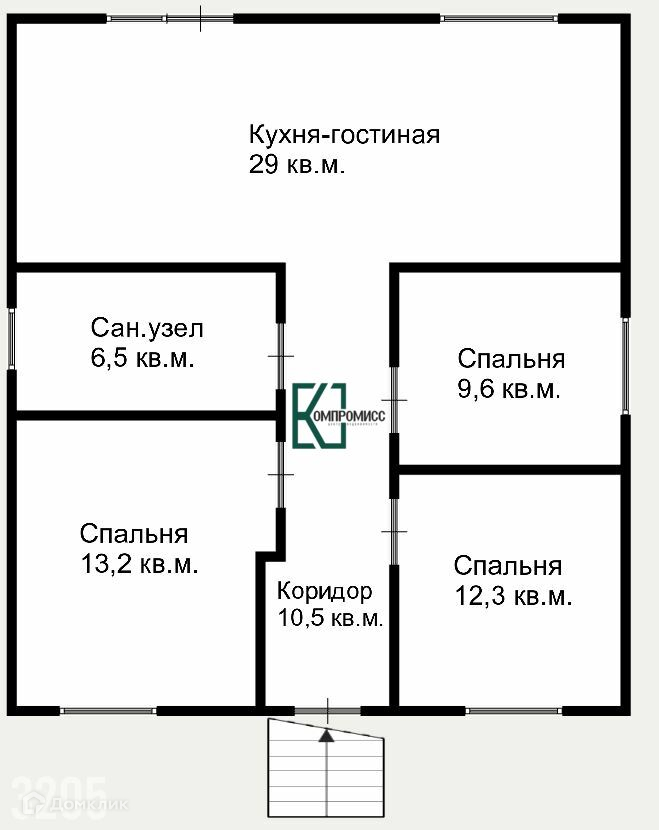 В доме 3 изолированные комнаты, кухня-гостиная, сан. узел, коридор.