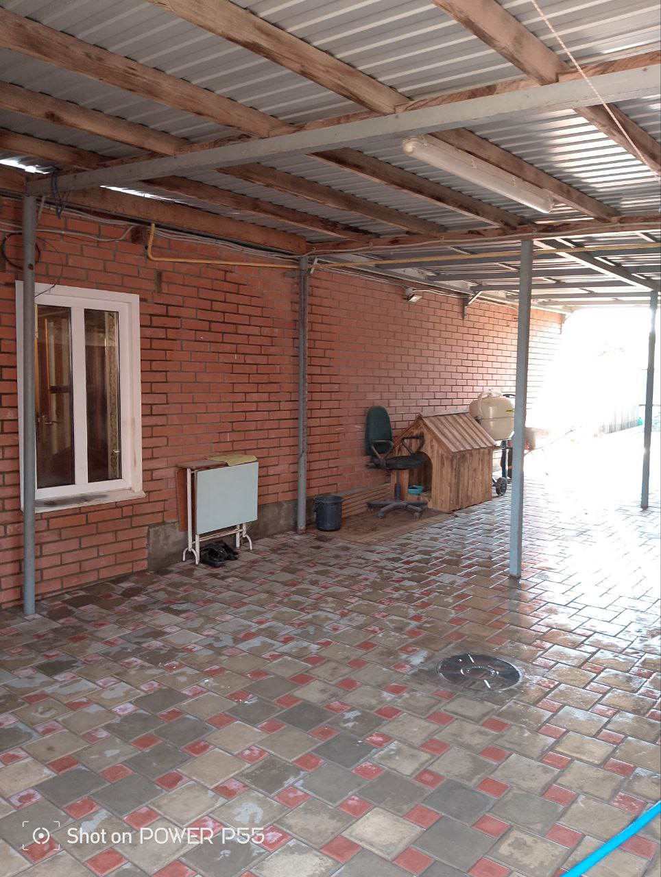 Крытый заезд во двор, под навес поместятся 2 небольших авто. Рулонные ворота на пульте.