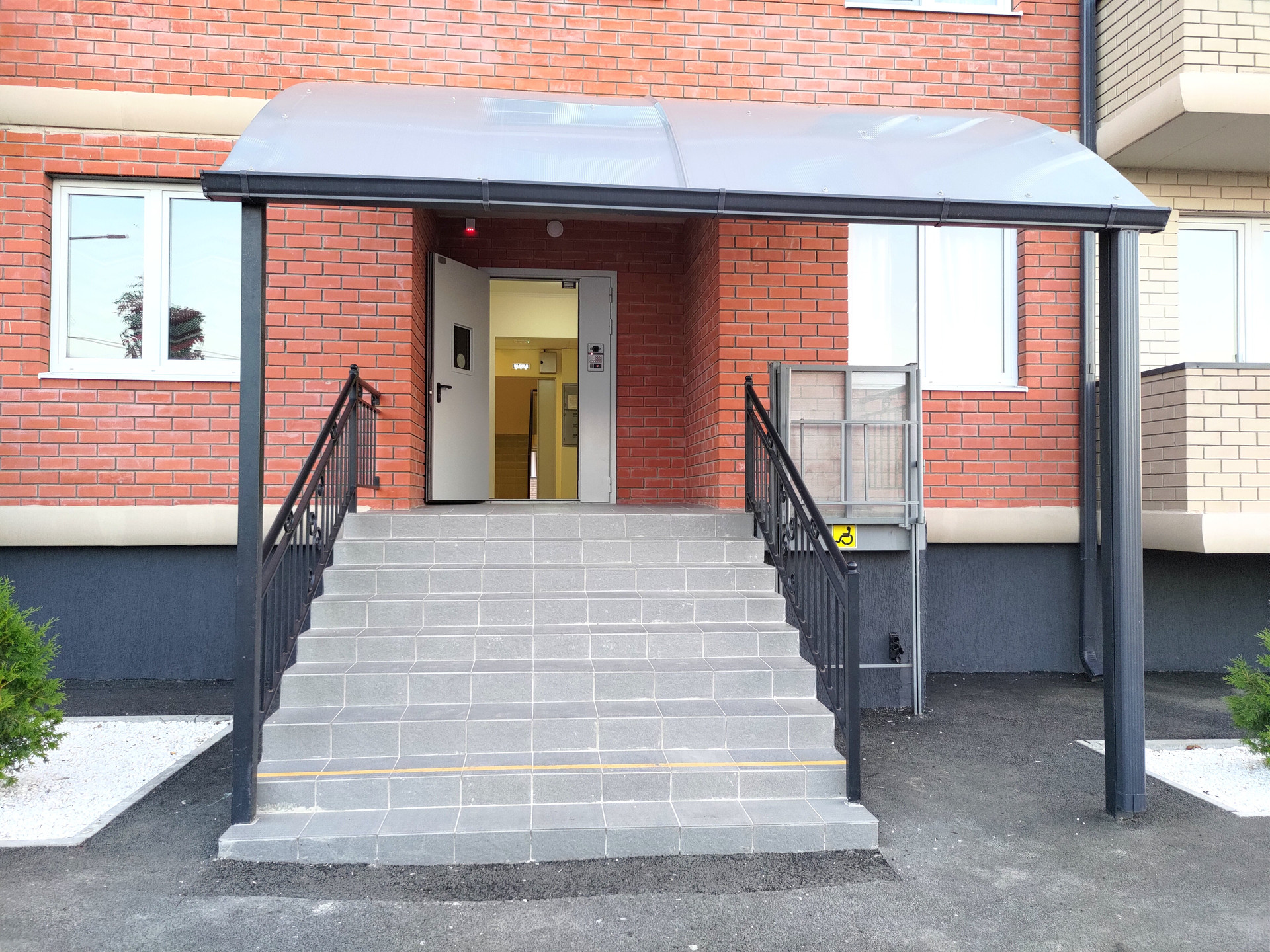 Во дворе, 2 детских площадки и одна с тренажерами. Двор ухоженный, чистый. Лифт. Камеры видеонаблюдения во дворе и в подъезде. С середины июля установят домофон.