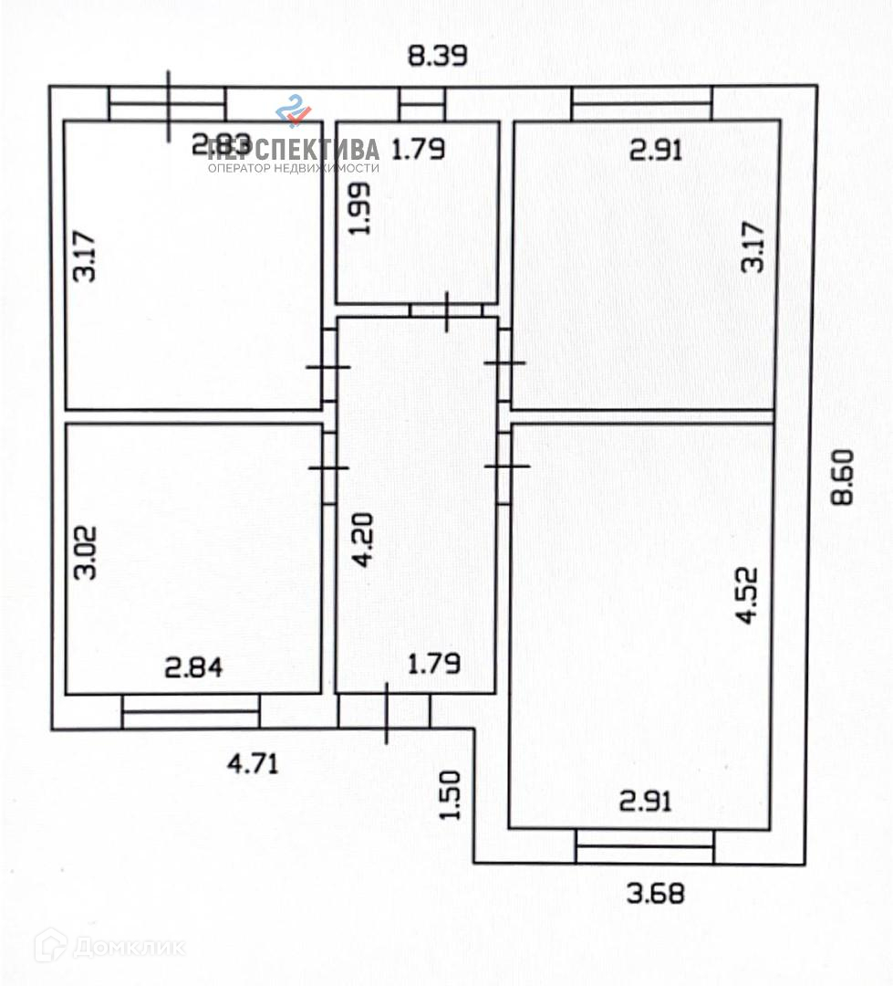 Общая площадь 54.1 м2