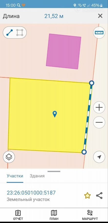 Участок отличается ровной поверхностью, что значительно упрощает строительные работы и снижает затраты на подготовку площадки. Широкий фасад, достигающий 22 метров, открывает превосходные возможности для строительства дома с комфортной планировкой и обустройства придомовой территории.