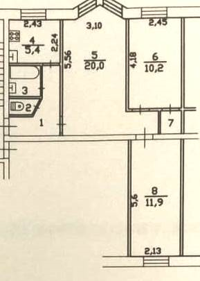 Площадь кухни 5.4 м2