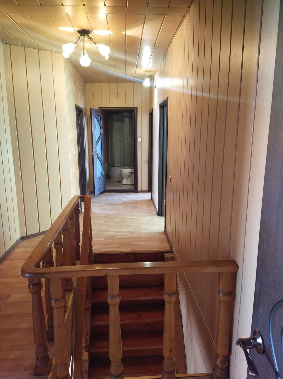 В доме 6 жилых комнат + кухня-гостинная, 3 ванные комнаты , вся свежая сантехника, пластиковые окна и балконные двери.