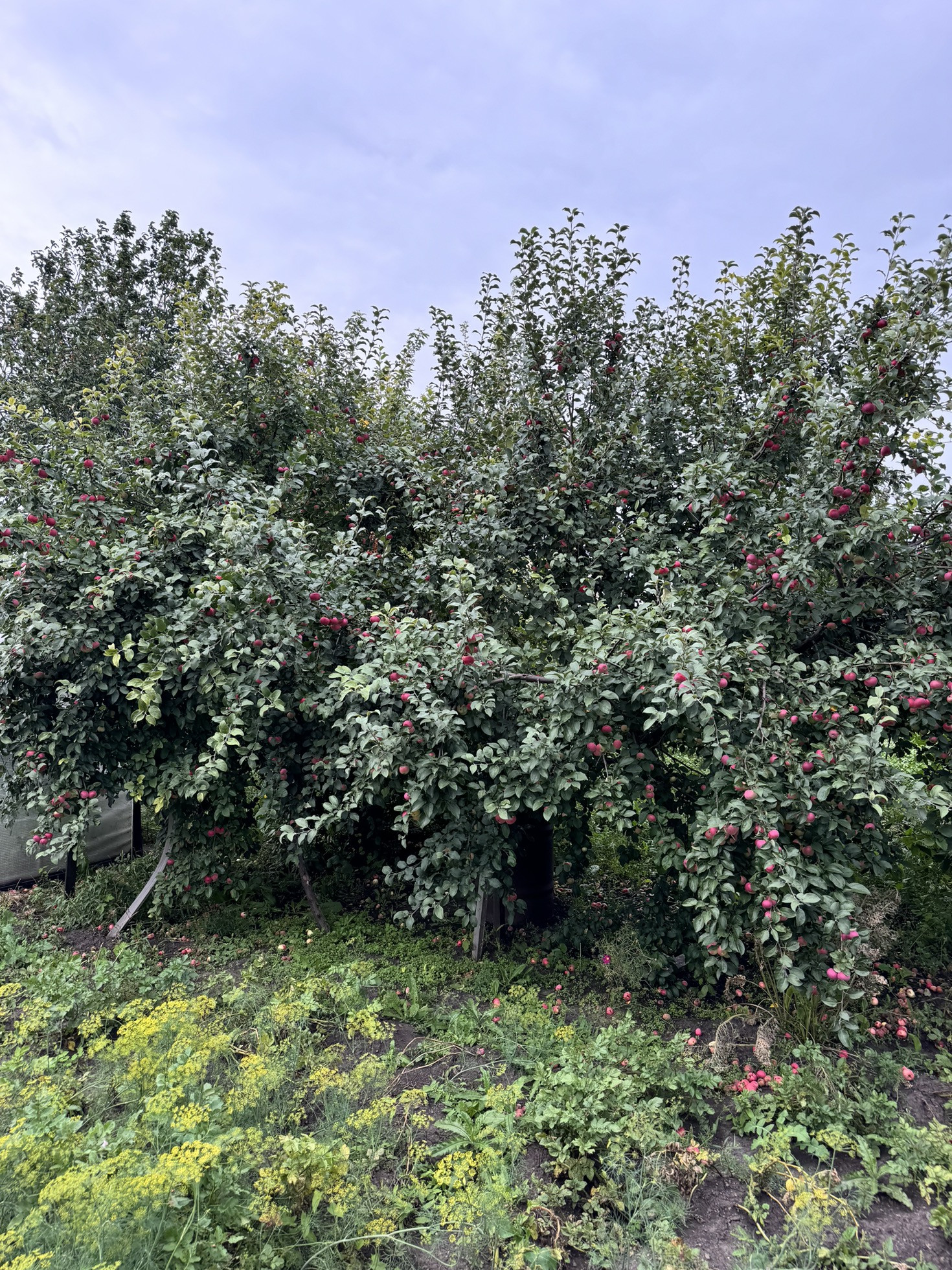 Большое насаждение плодовых деревьев ( яблоня, вишня,малина, смородина)