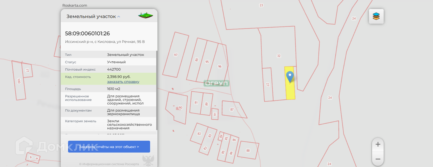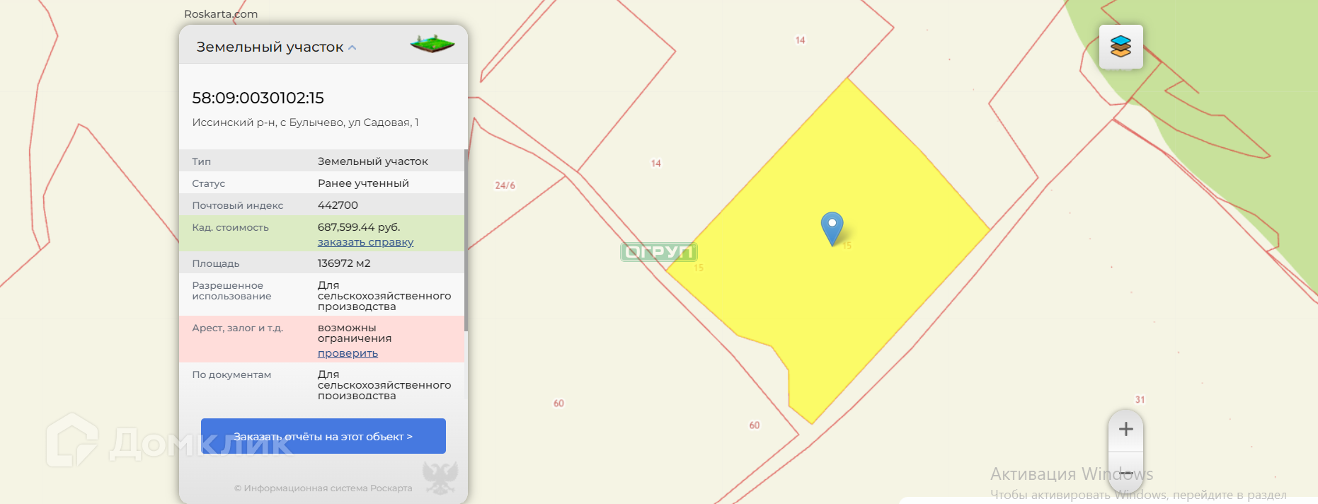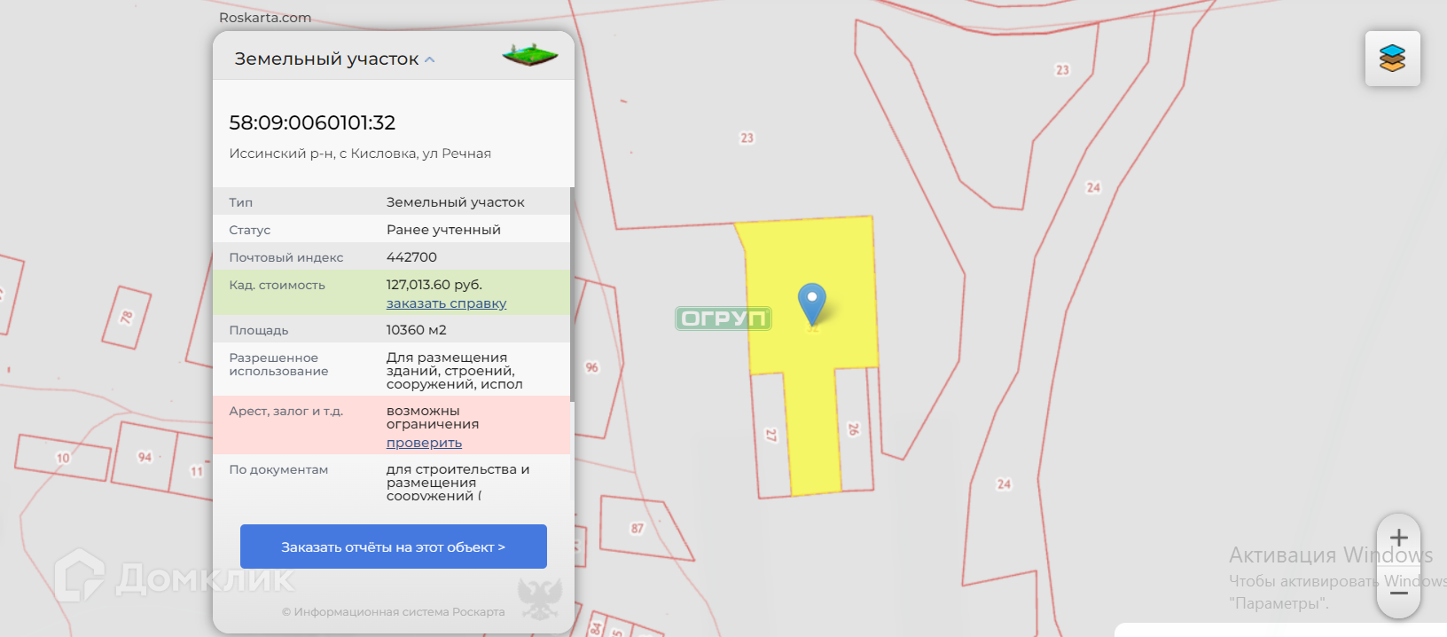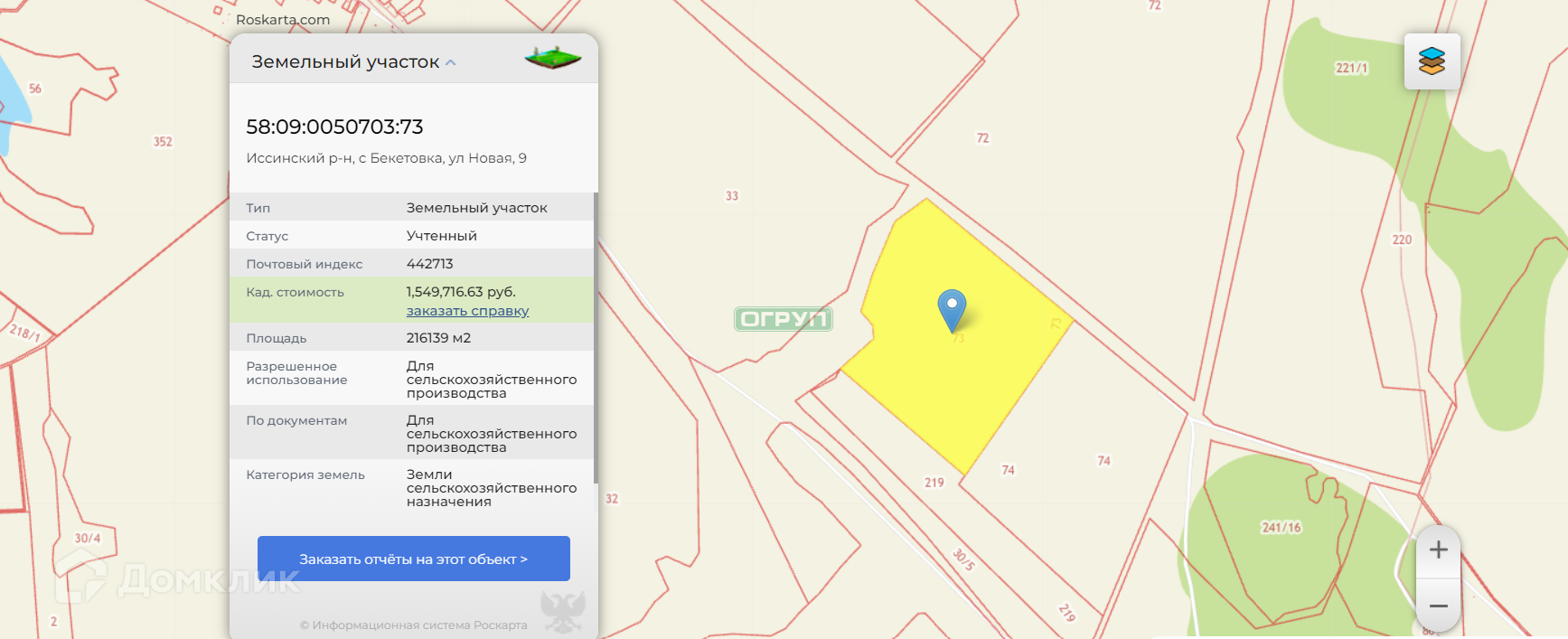Участок под ИЖС, 93200 сот. на продажу в посёлке городского типа Исса, проезд Калинина, 11