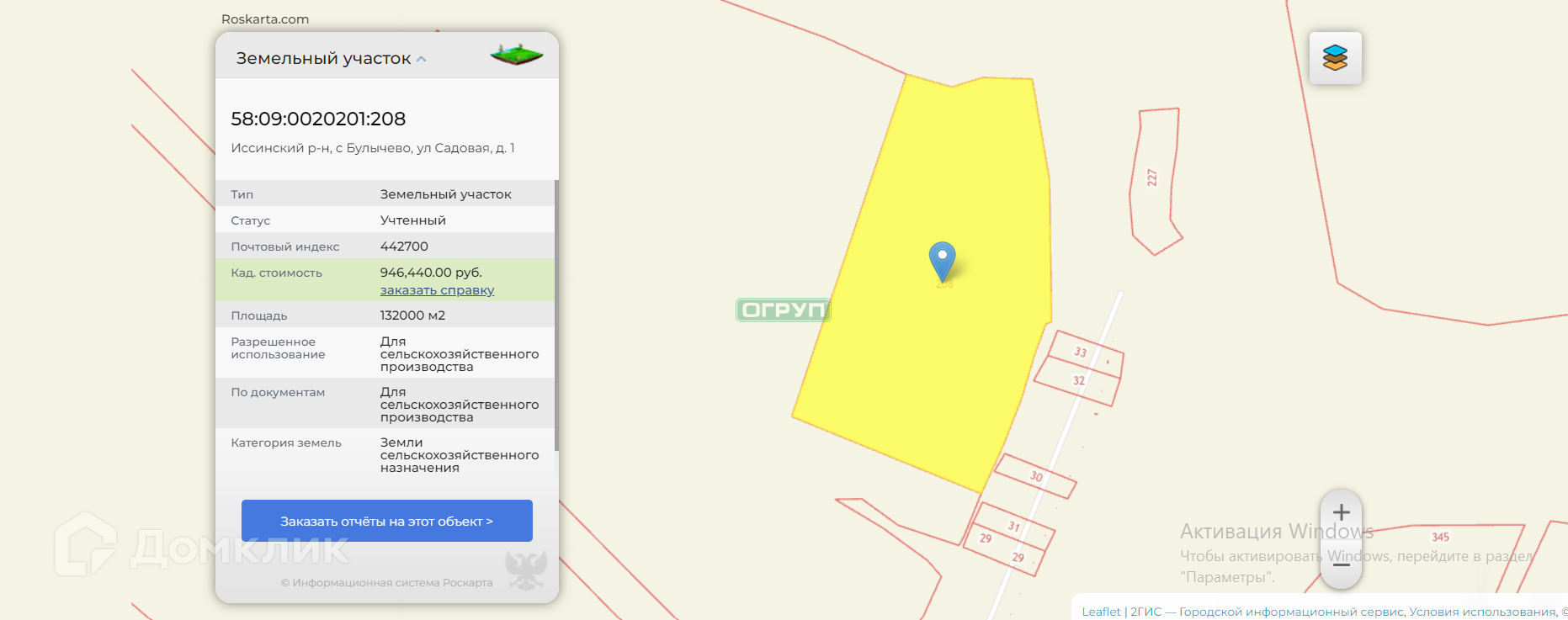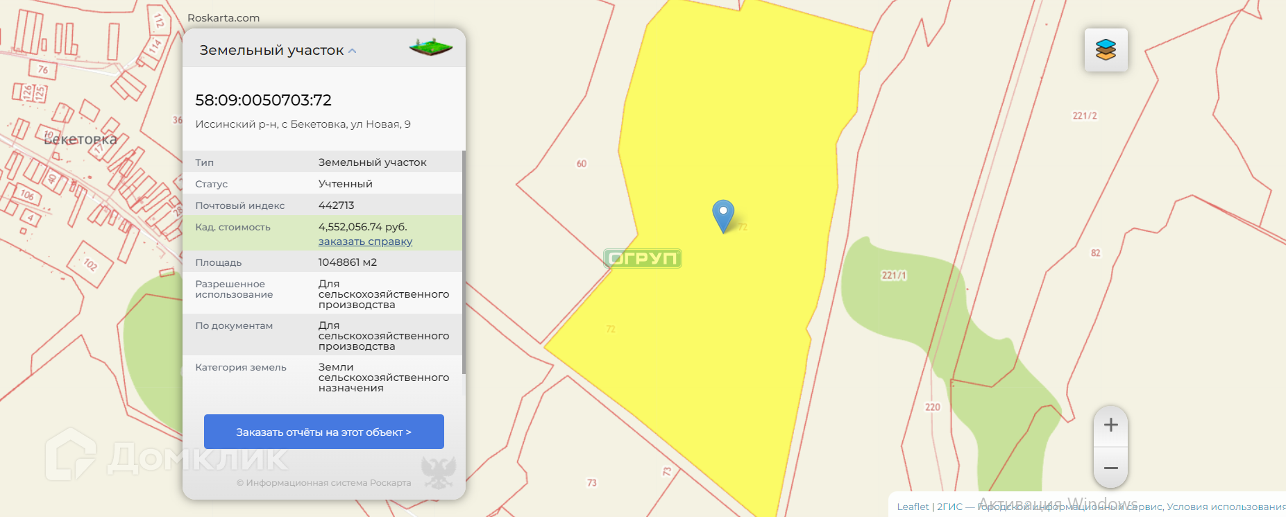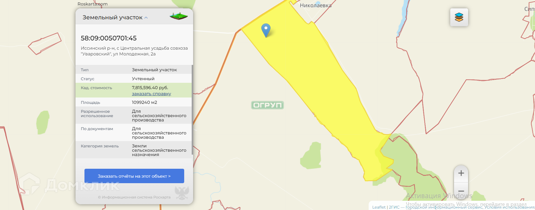 Участок под ИЖС, 93200 сот. на продажу в посёлке городского типа Исса, проезд Калинина, 11