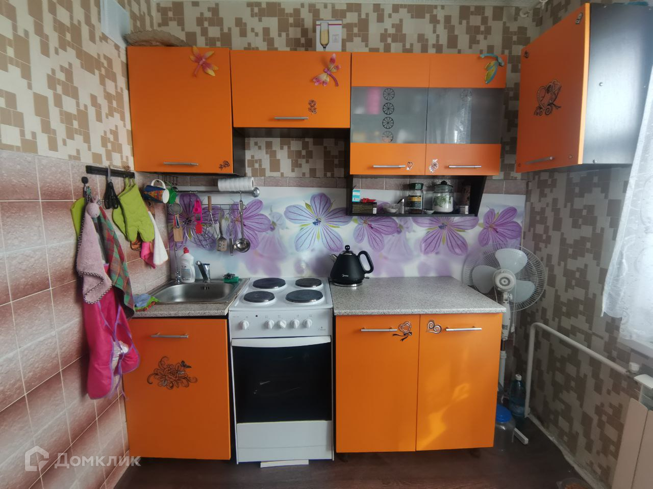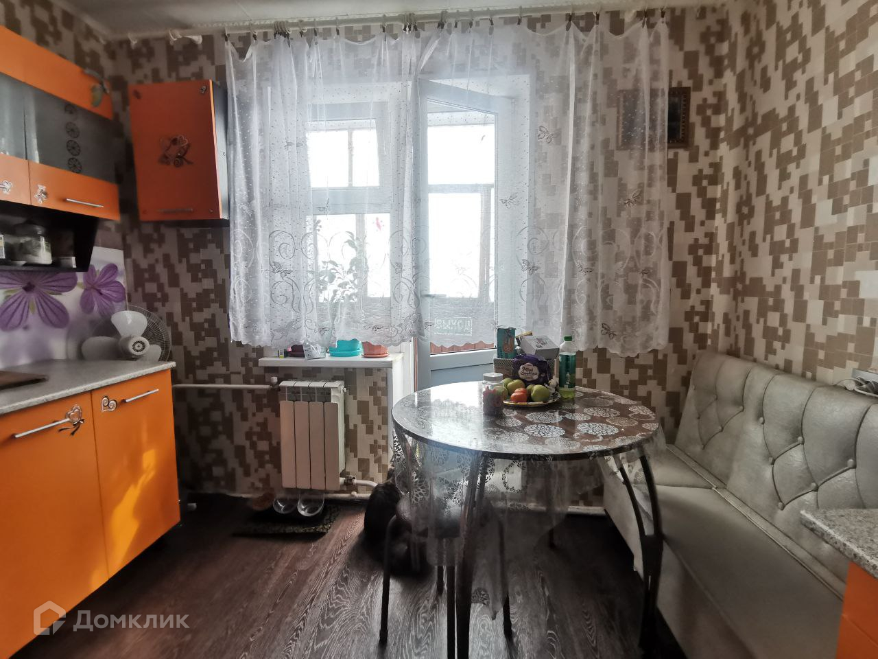 В квартире остается кухонный гарнитур с встроенной техникой, стол, холодильник и много дополнительных приборов.