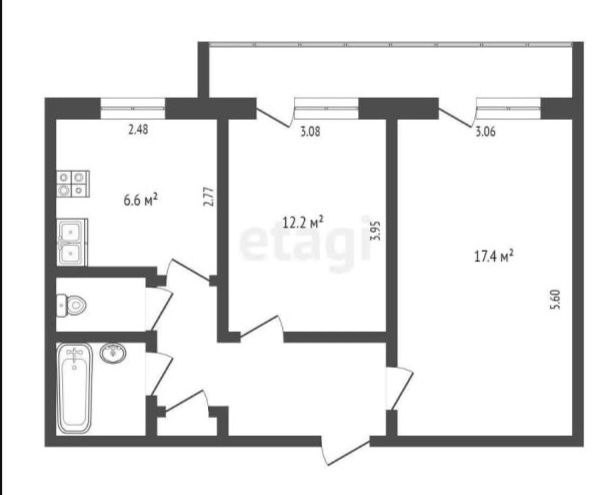 Квартира включает в себя жилую площадь 29.3 квадратных метров и кухню площадью 6.6 квадратных метров. Здесь выполнен косметический ремонт, что позволит новым владельцам сразу же заселиться без дополнительных вложений. Также имеется один балкон, который можно обустроить под зону отдыха или небольшой зелёный уголок.