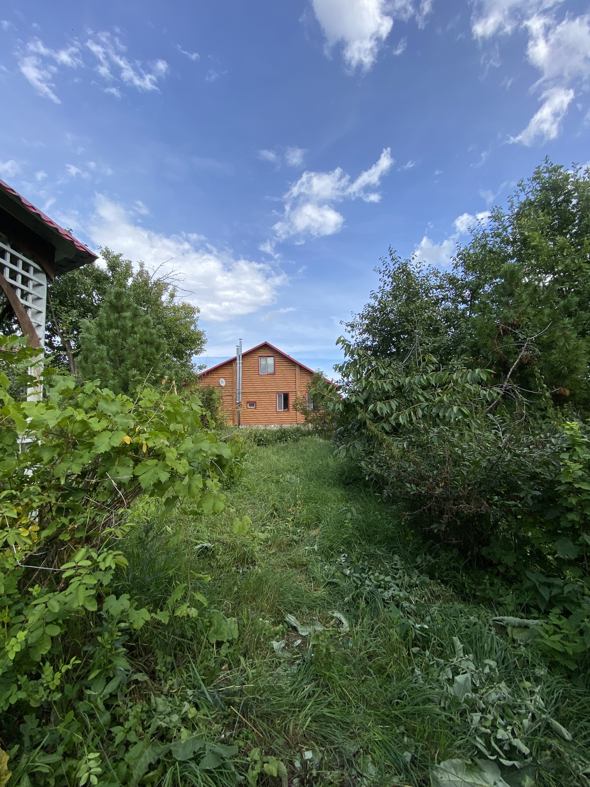 Большой плодоносящий сад, яблони, груши, айва, черешни, сливы, смородина, жимолость, вишня, малина и кизил, виноград. Также имеются хвойные растения (кедры, сосны, туя, можжевельник). Имеется свободная площадь для увеличения участка.