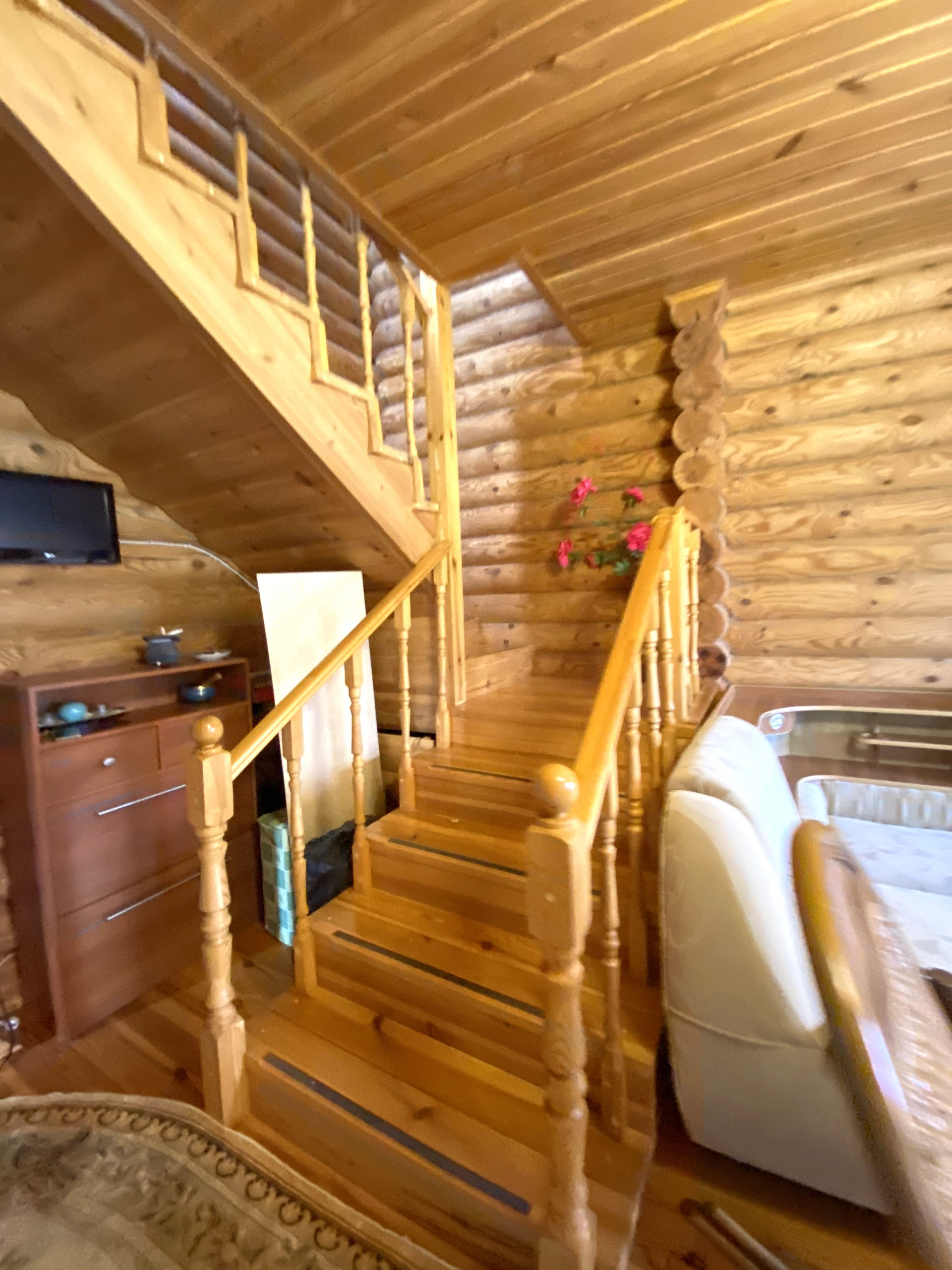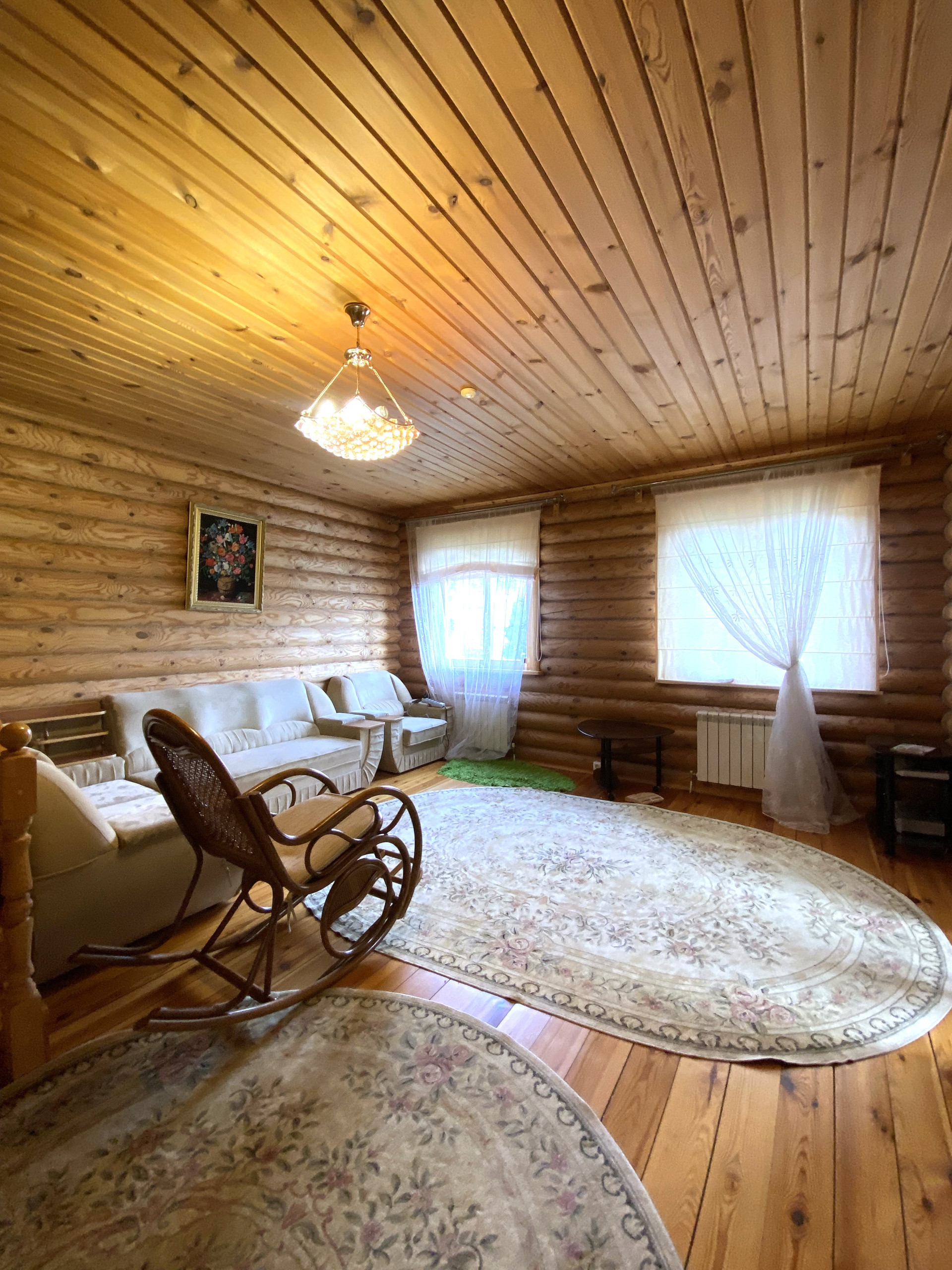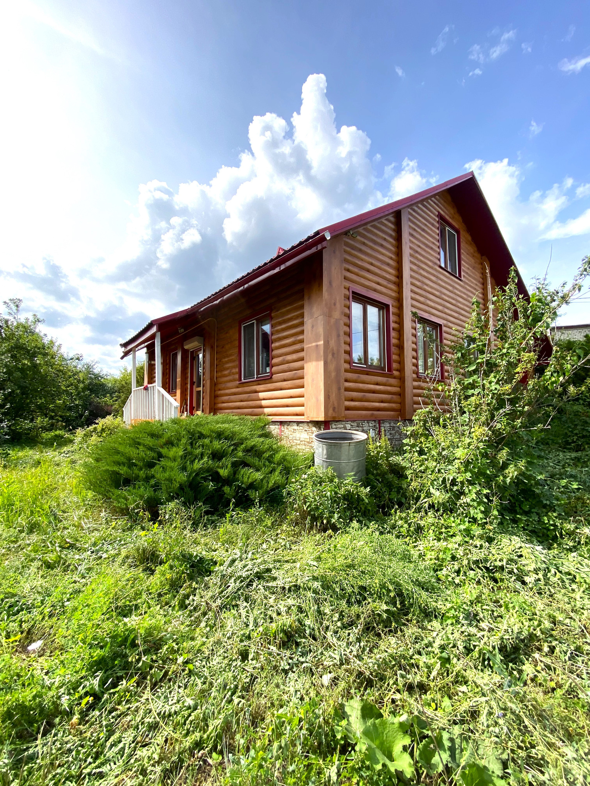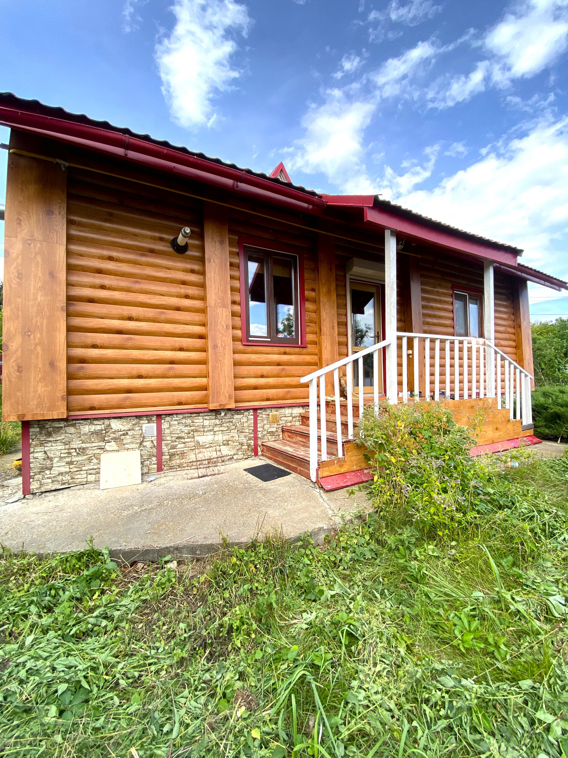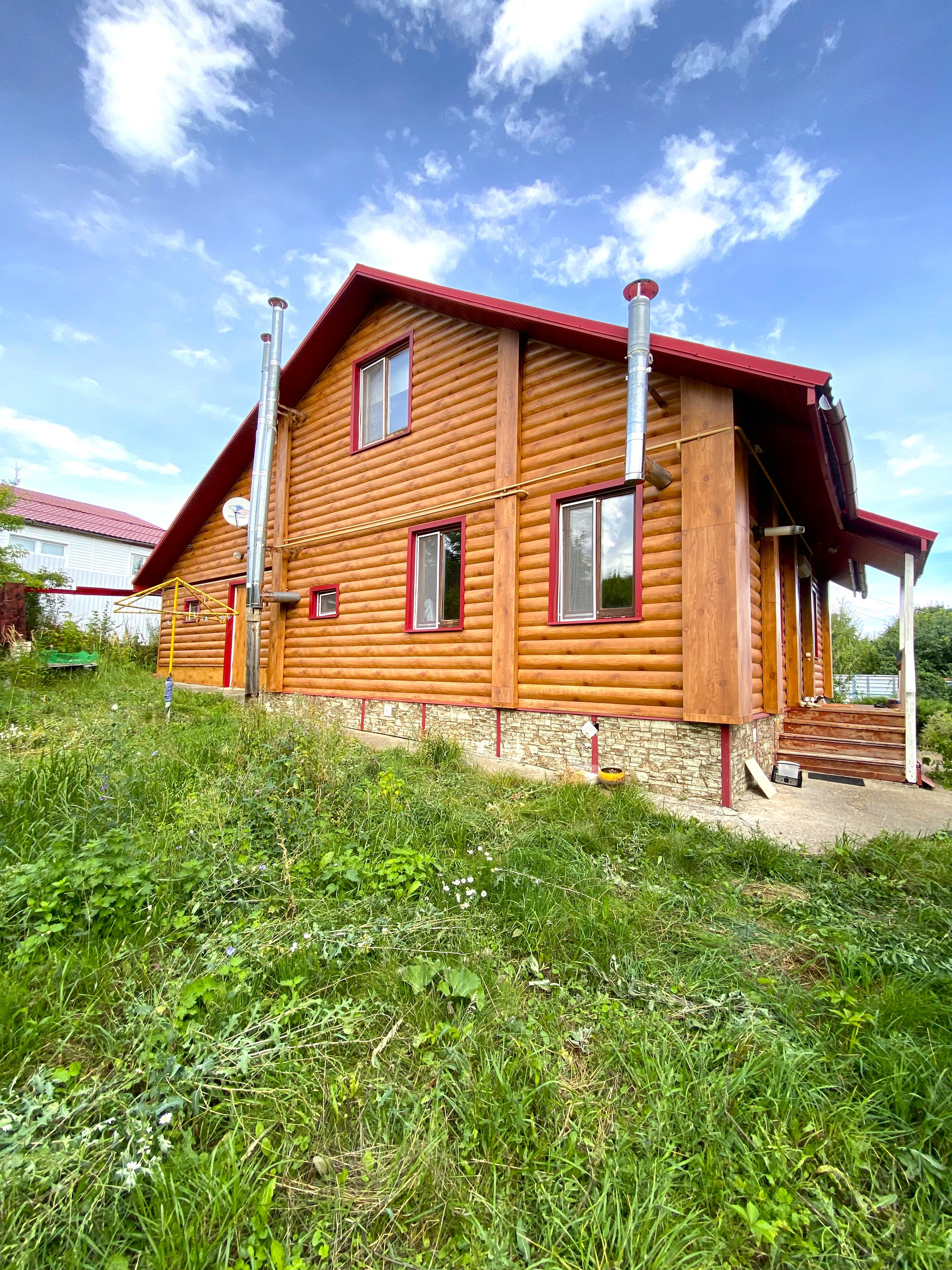 Материал-стен: бревенчатый, высокий фундамент