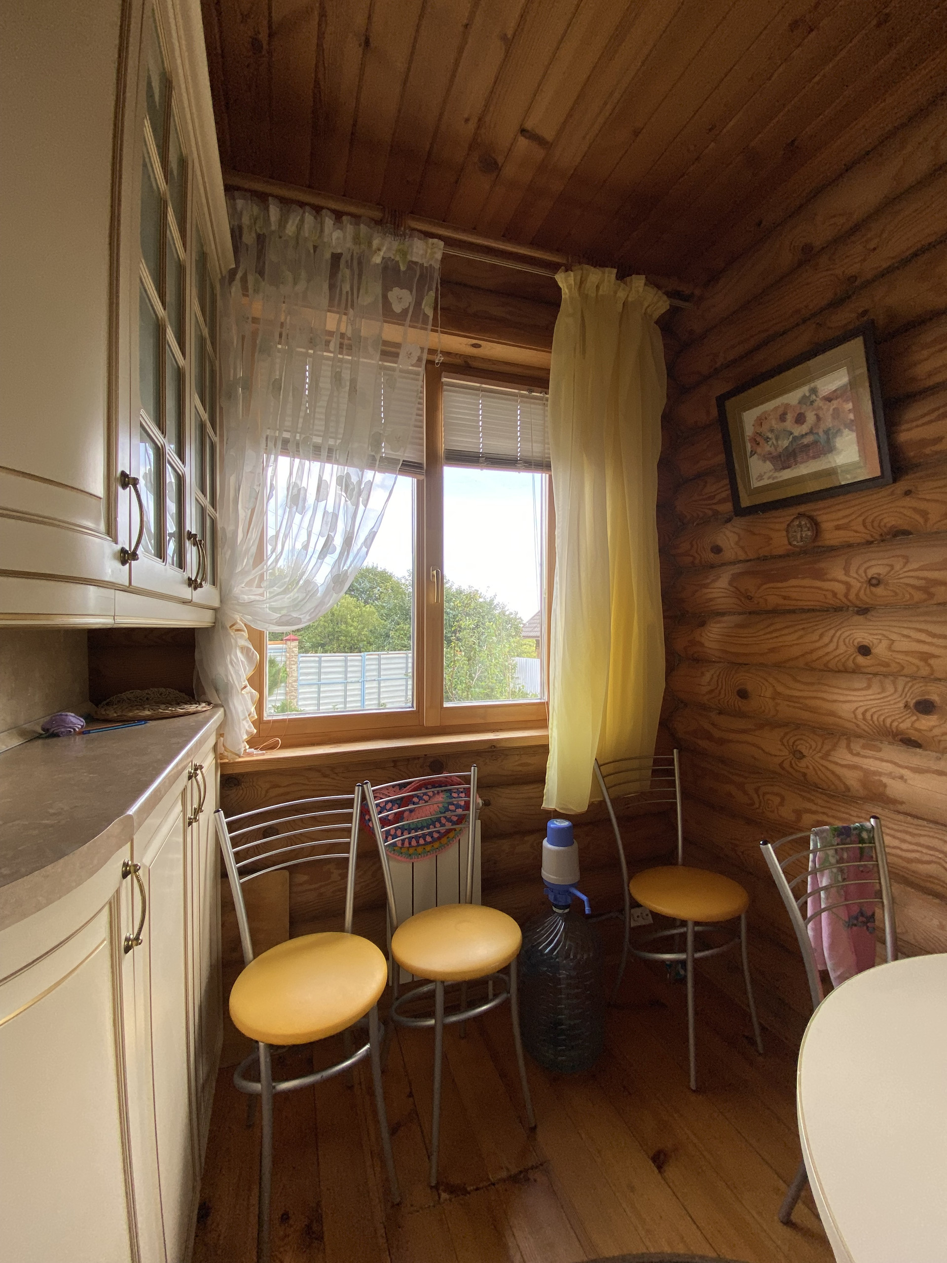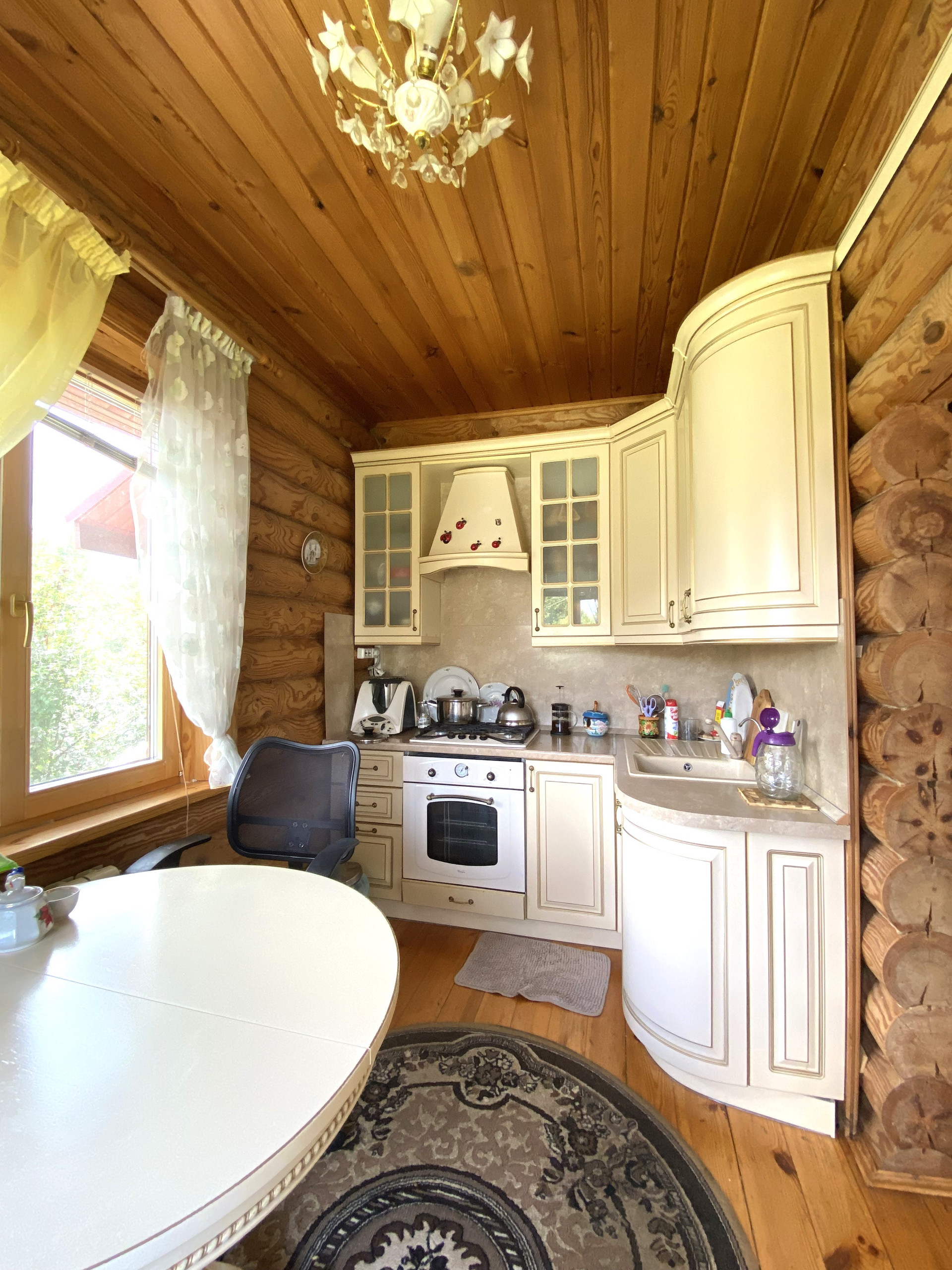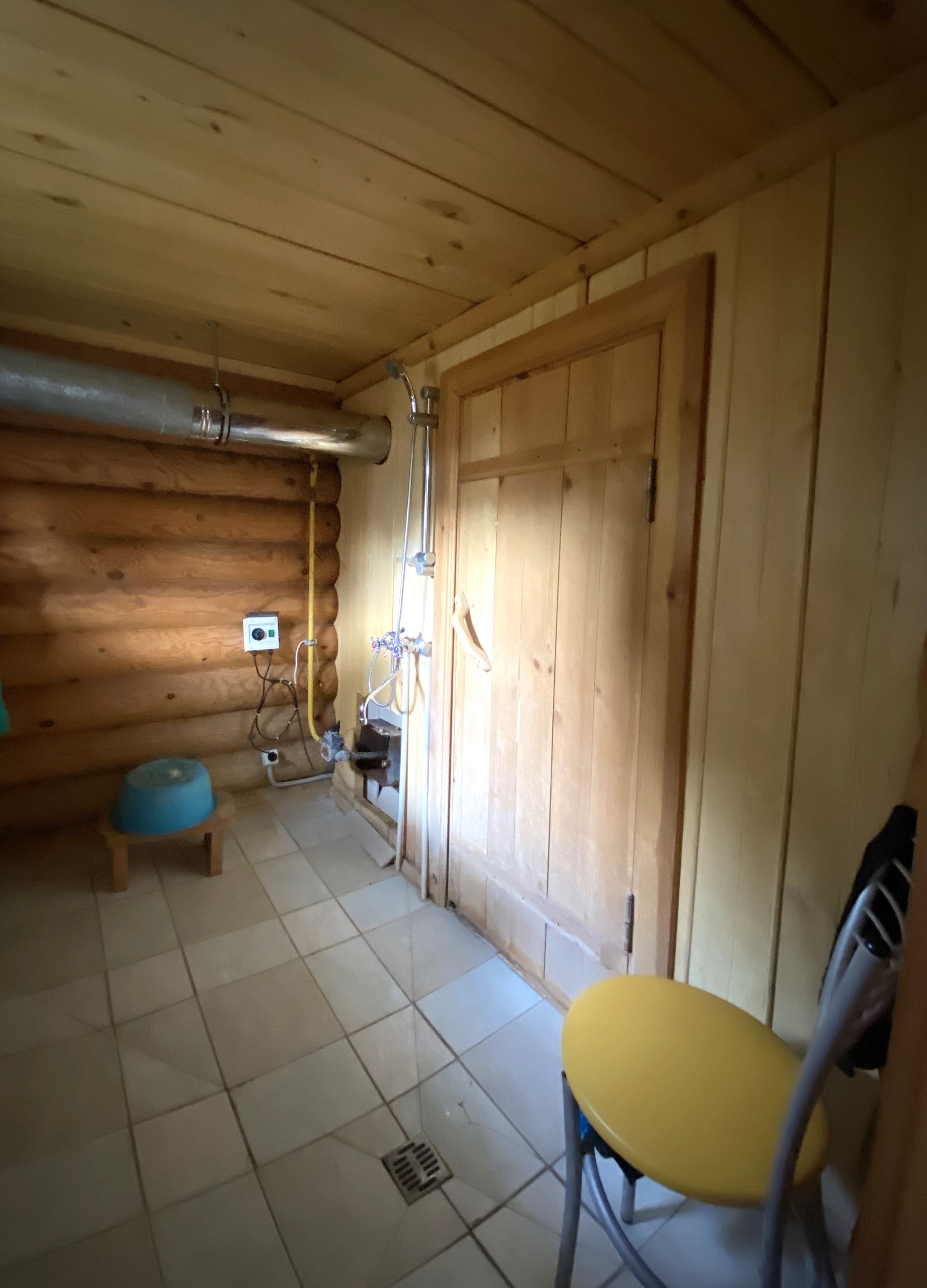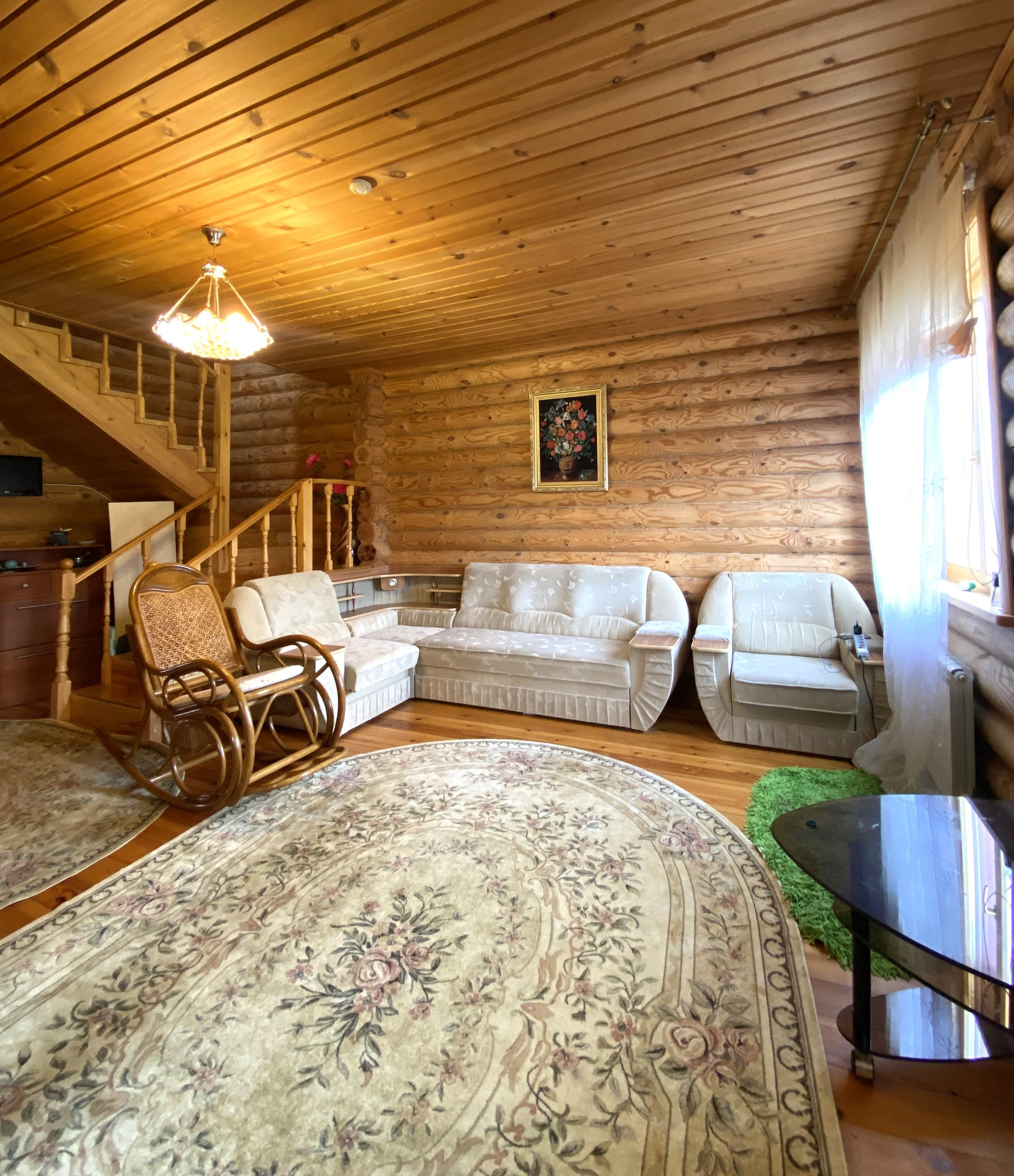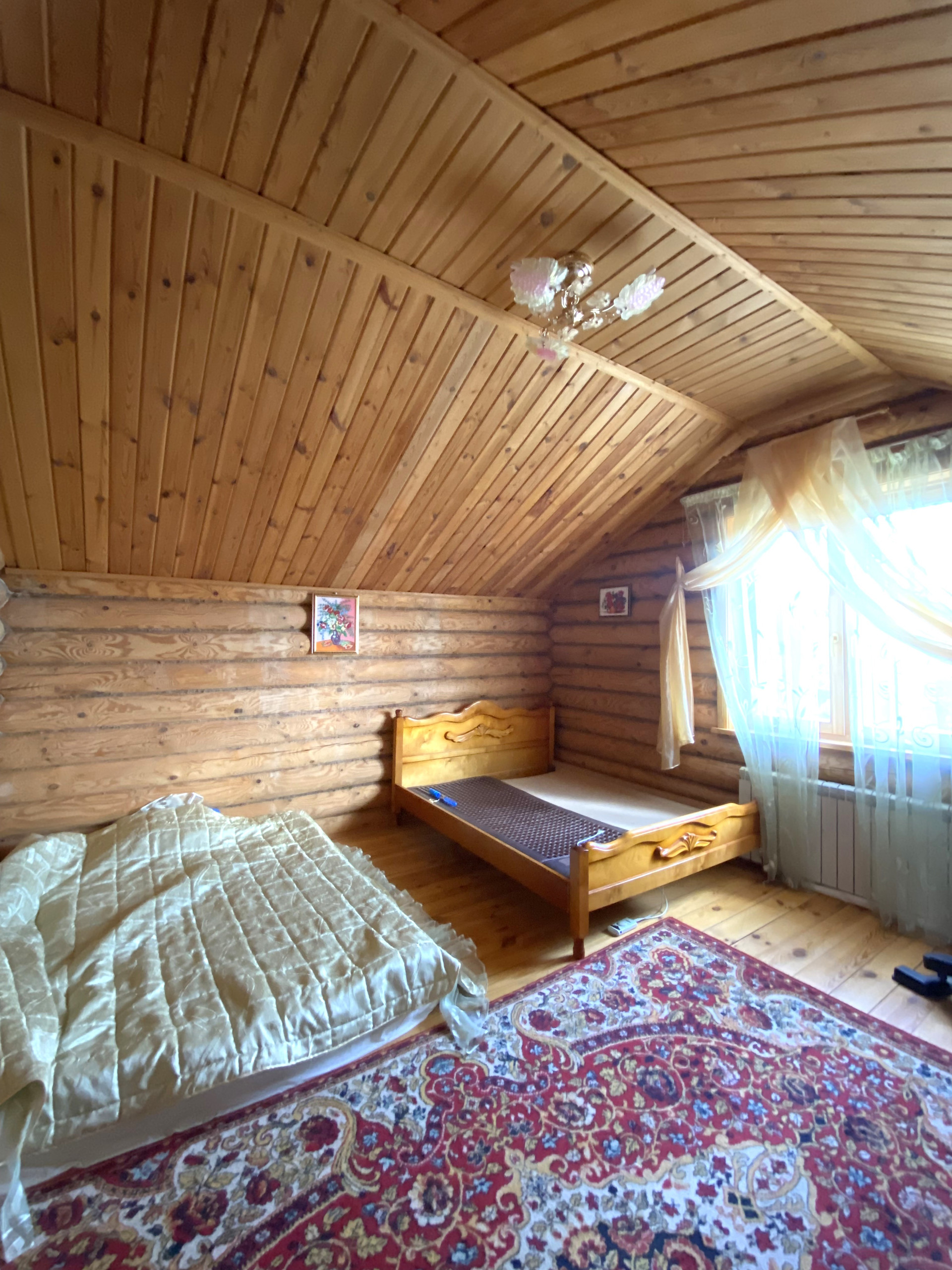 Материал-стен: бревенчатый, высокий фундамент