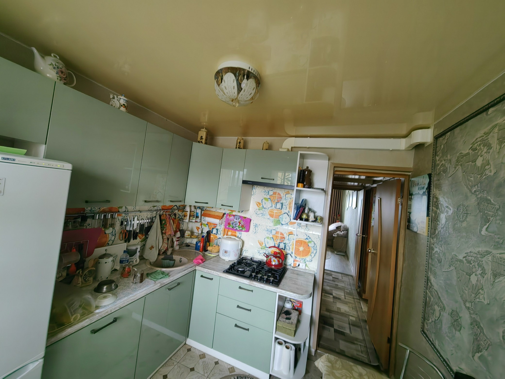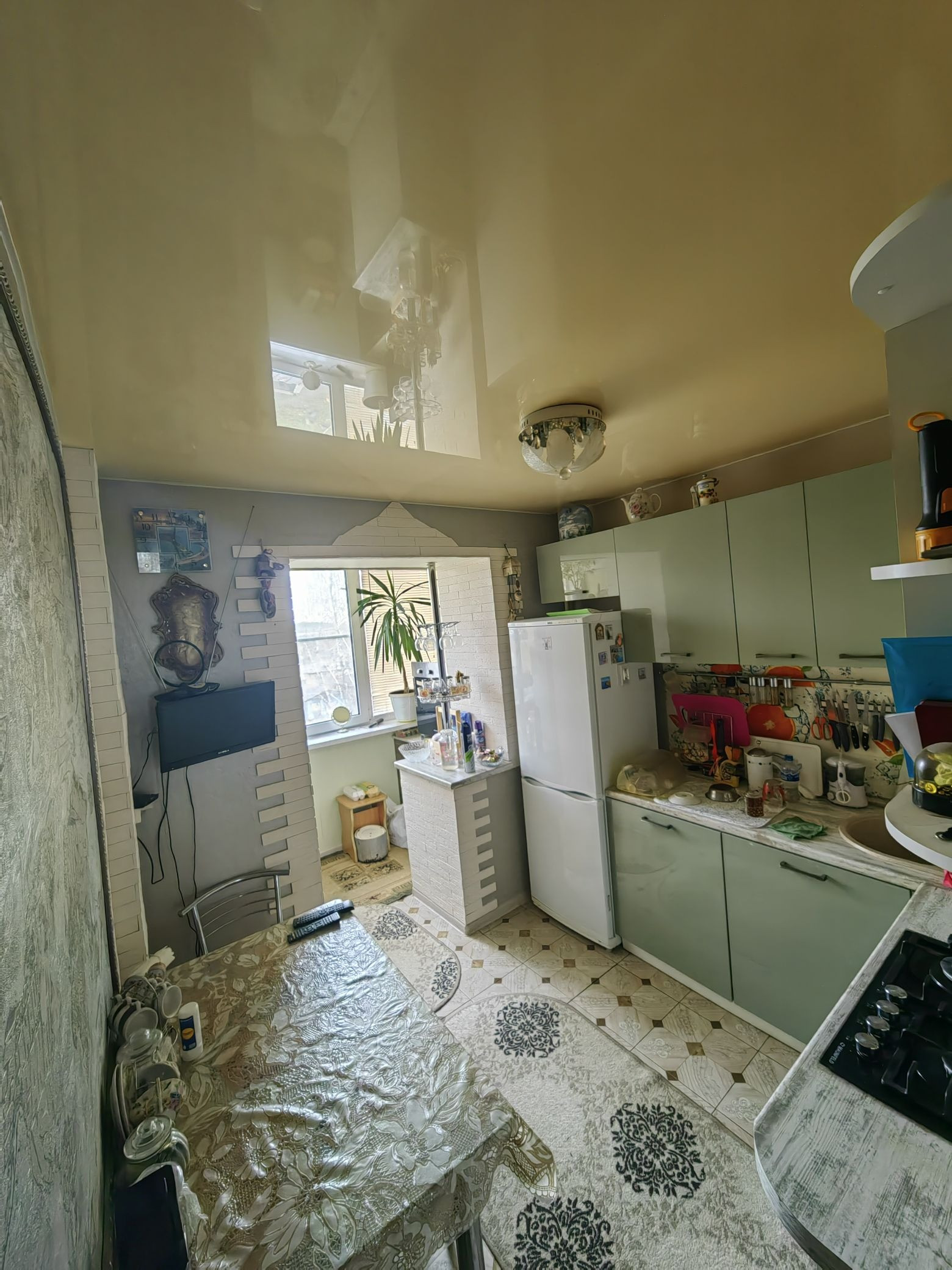 Кухня встроенная, просторная!Пол на кухне - плитка!