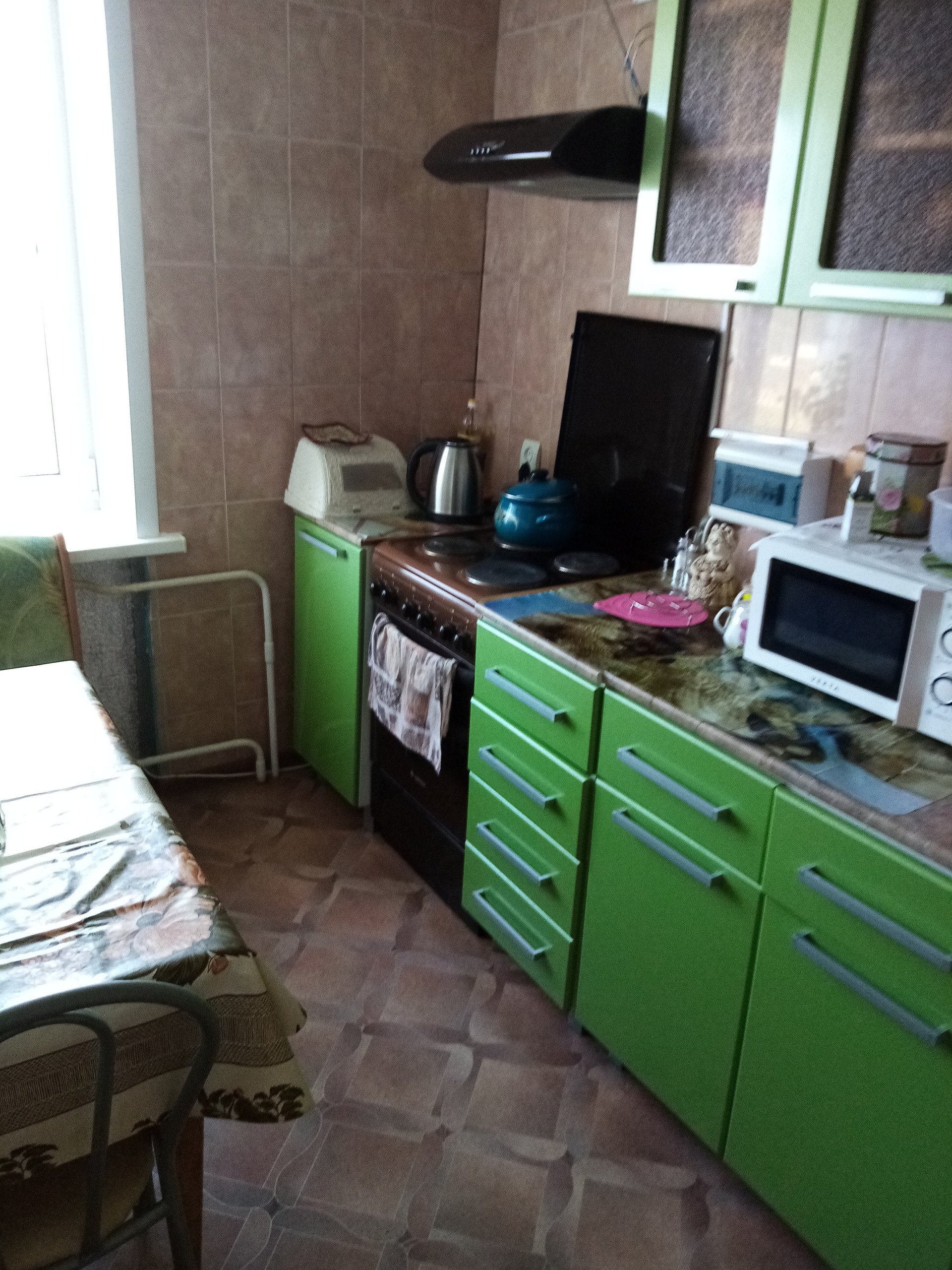 В квартире установлены пластиковые окна, в комнатах натяжные потолки и ламинат. Установлены счётчики на холодную и горячую воду. На кухне остаётся кухонный гарнитур, электроплита и вытяжка(новые). В шаговой доступности(5минут) автобусная остановка, магазины.