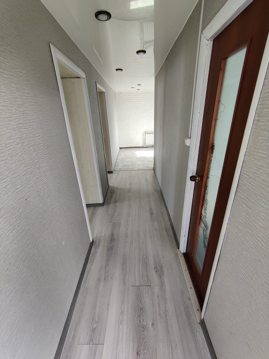Продается благоустроенная двухкомнатная квартира в трехквартином  брусовом доме,51 кв.м. окна пластиковые, квартира светлая, на полу ламинат, ремонт свежий, батареи биометалл, скважина(вода питьевая), имеется с отдельным входом котельная(котла нет), крыша профлист. Земельный участок огорожен полностью профлистом, имеются насаждения, теплица. На участке гараж размером  6*12. Стоимость 3600,0 тыс руб