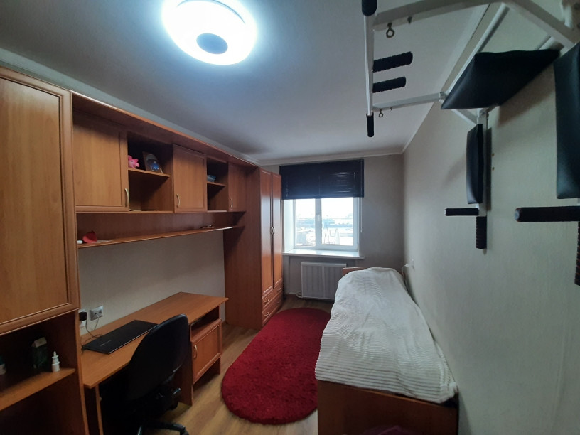 Входные двери утепленные, двойные - деревянная и металлическая. Все окна пластиковые, на полах в комнатах ламинат, кухня и коридор линолеум, в ванной керамическая плитка. Имеется балконное остекление. Жалюзи алюминиевые в детской, в остальных комнатах рулонные шторы полиэстер.