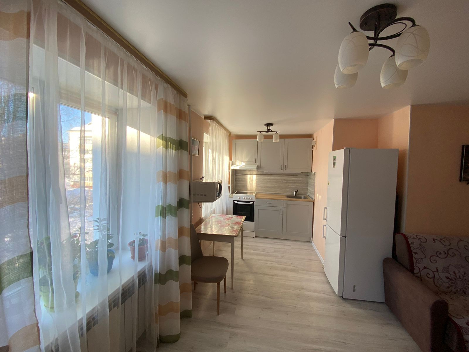 3-комнатная квартира перепланированная в 2-х комнатную (перепланировка узаконена), большая кухня-гостиная, площадь 53 кв.м., этаж 3. Пластиковые окна, шкаф купе, встроенная кухня, хороший ремонт, светлая, уютная, стены утеплены.