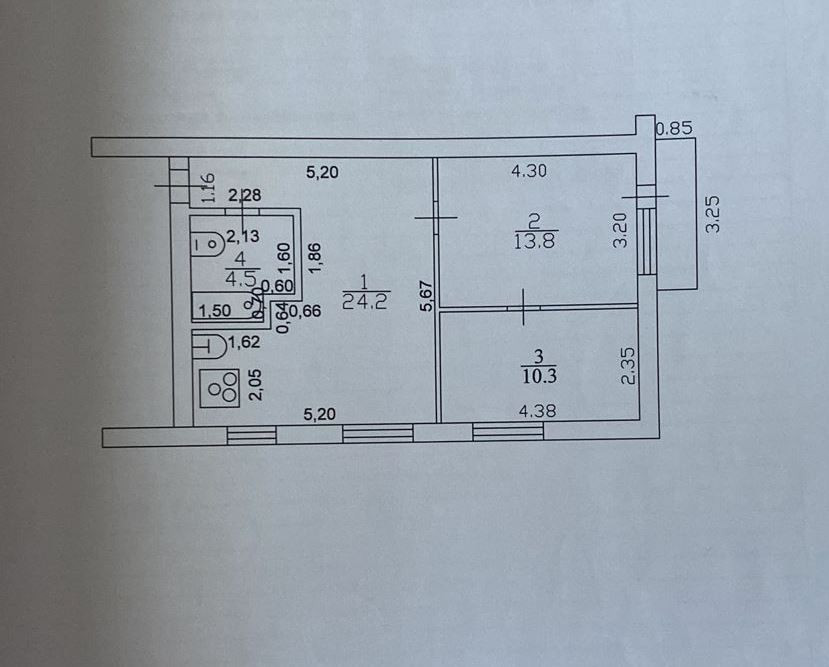 Общая площадь 52.8 м2