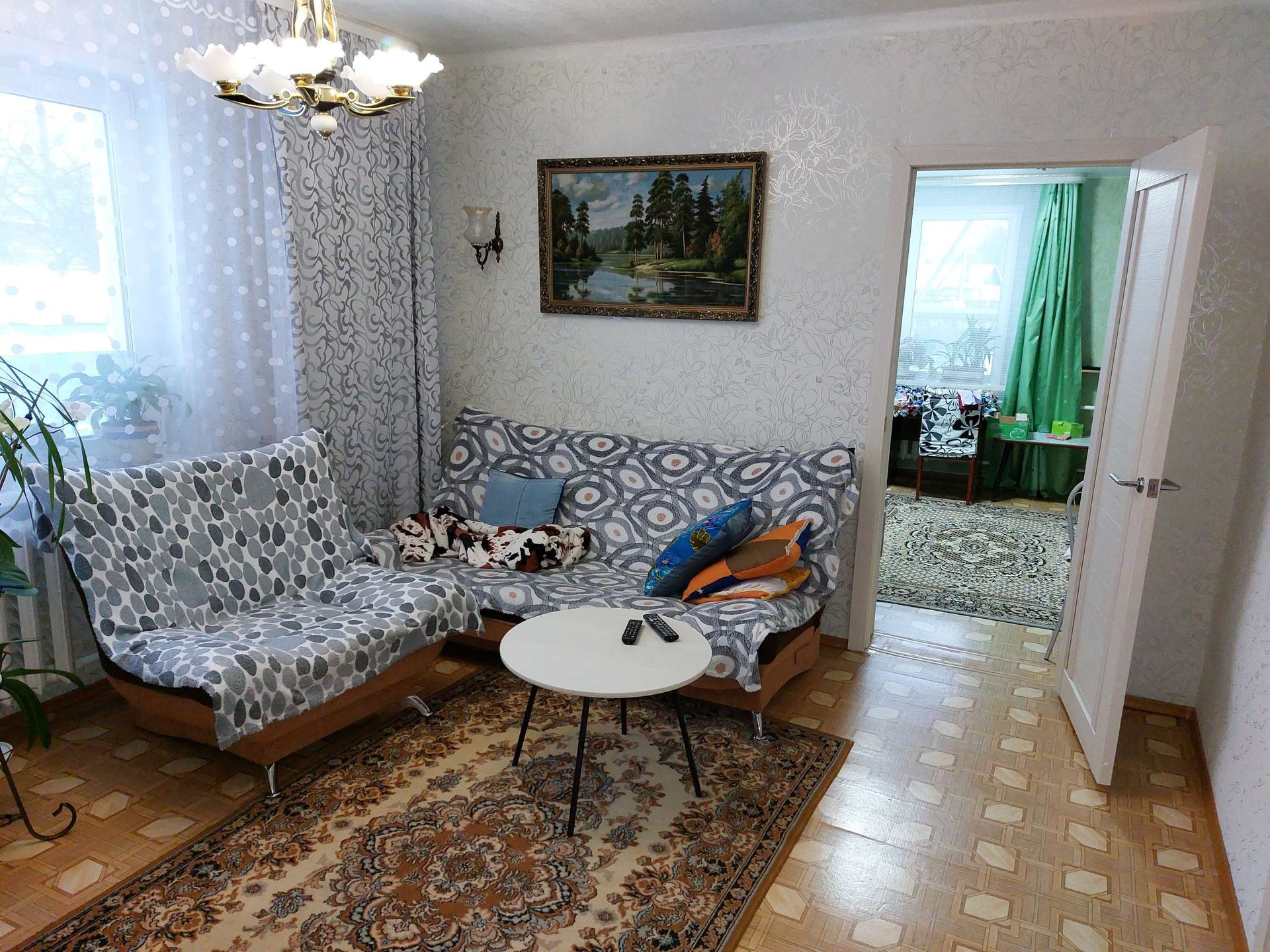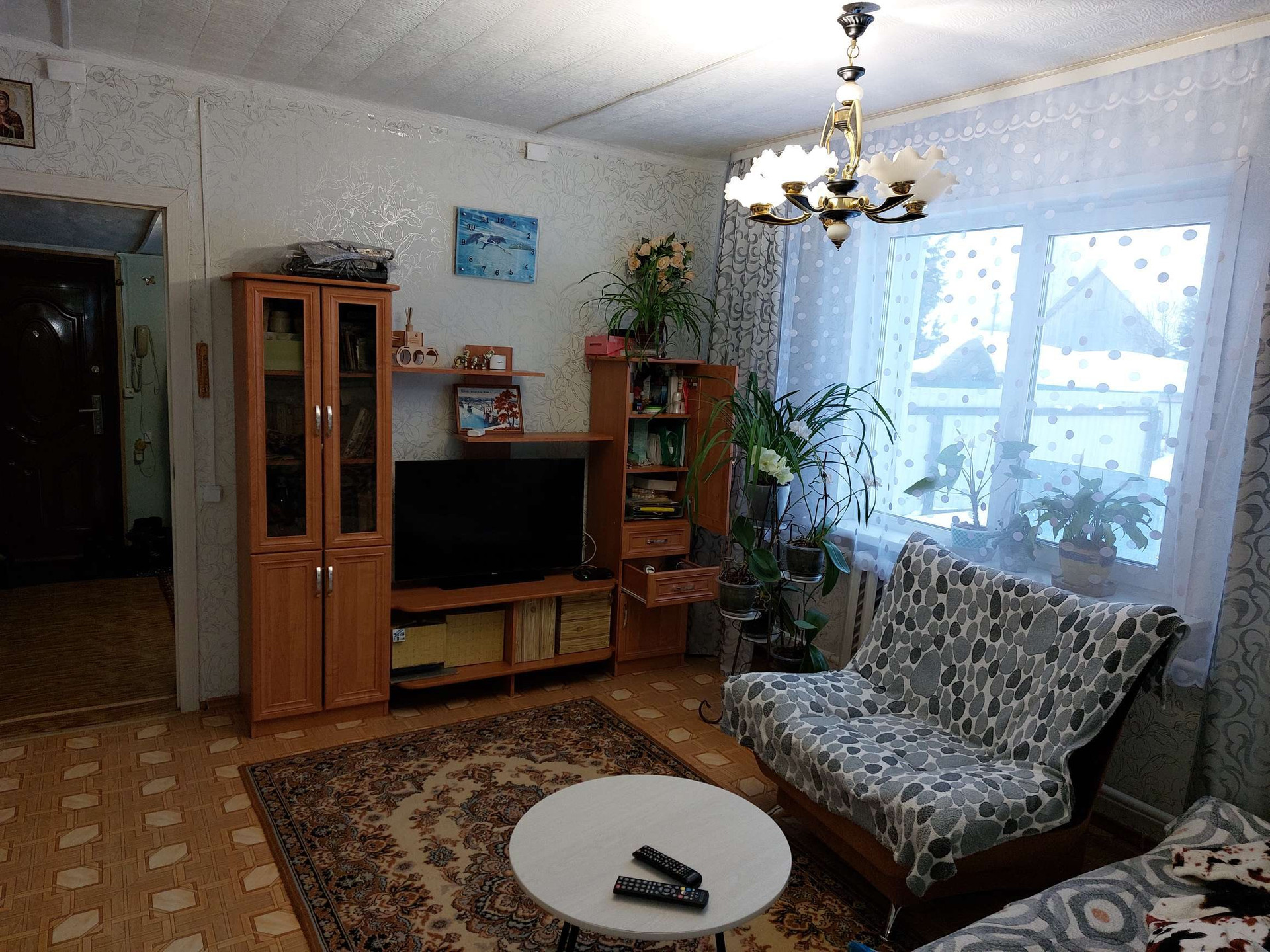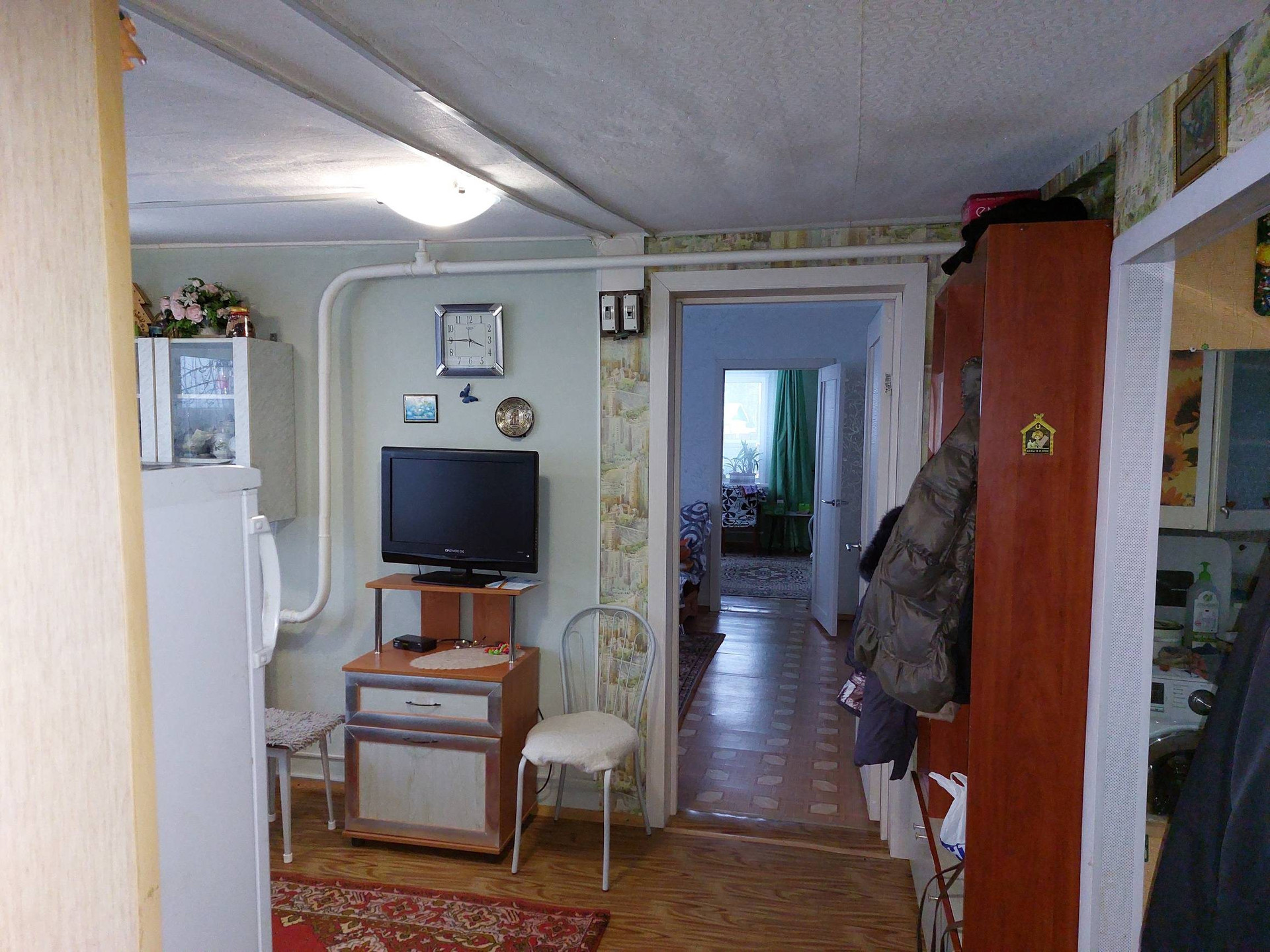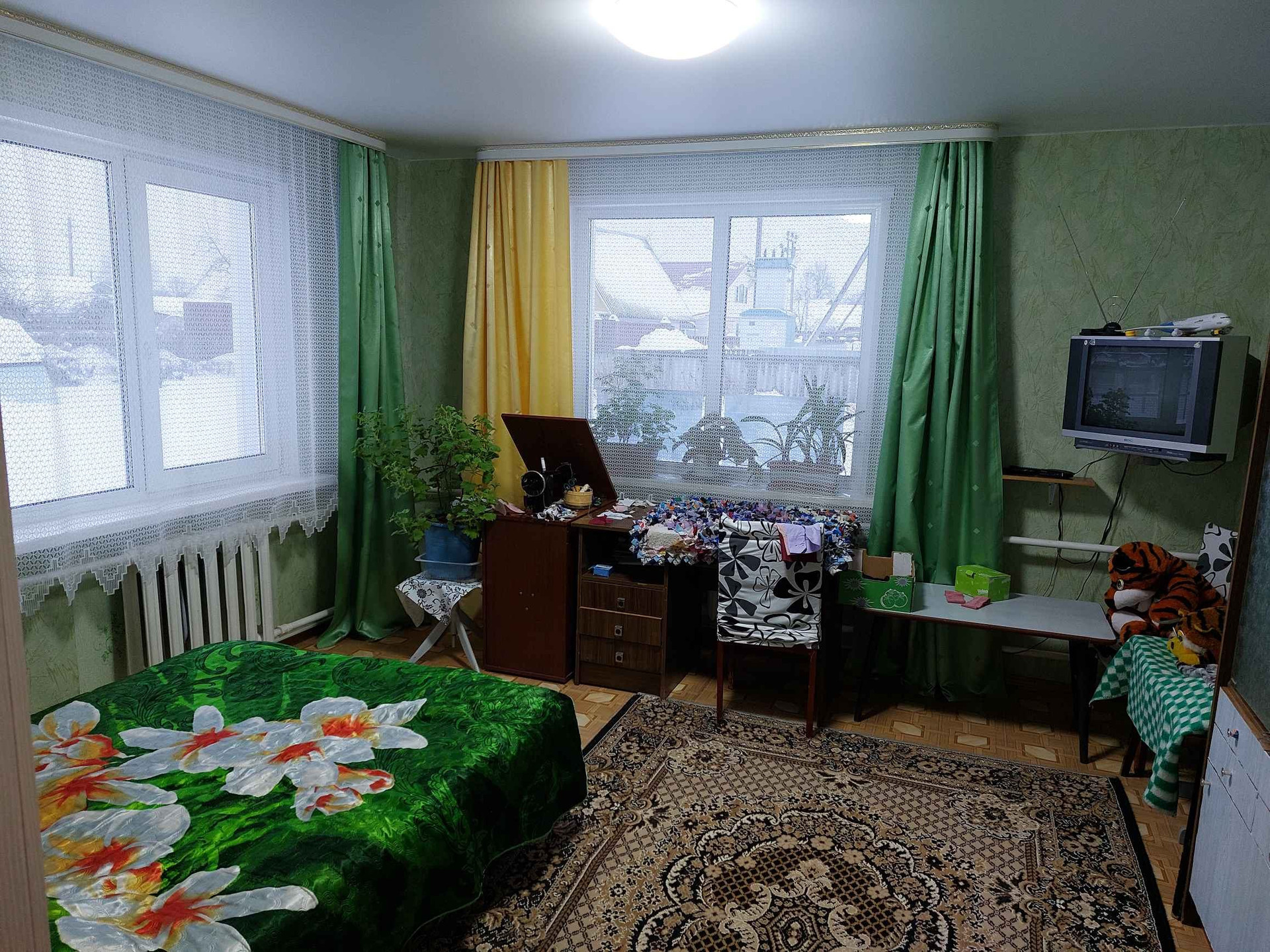 продаётся квартира в двух квартирном брусчатом  доме обложенным кирпичем ,общей площадью 71,8м2,в доме газ,вода горячая ,холодная ,санузел, канализация септик ,в доме 5 комнат (кухня,обеденная зона  ,зал ,3 спальни )на участке хоз.постройки , 3сарая, баня ,в бане подведена вода ,гараж под 2 машины ,двор изолированный не проходной