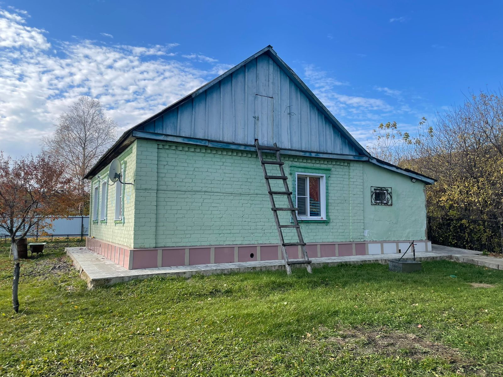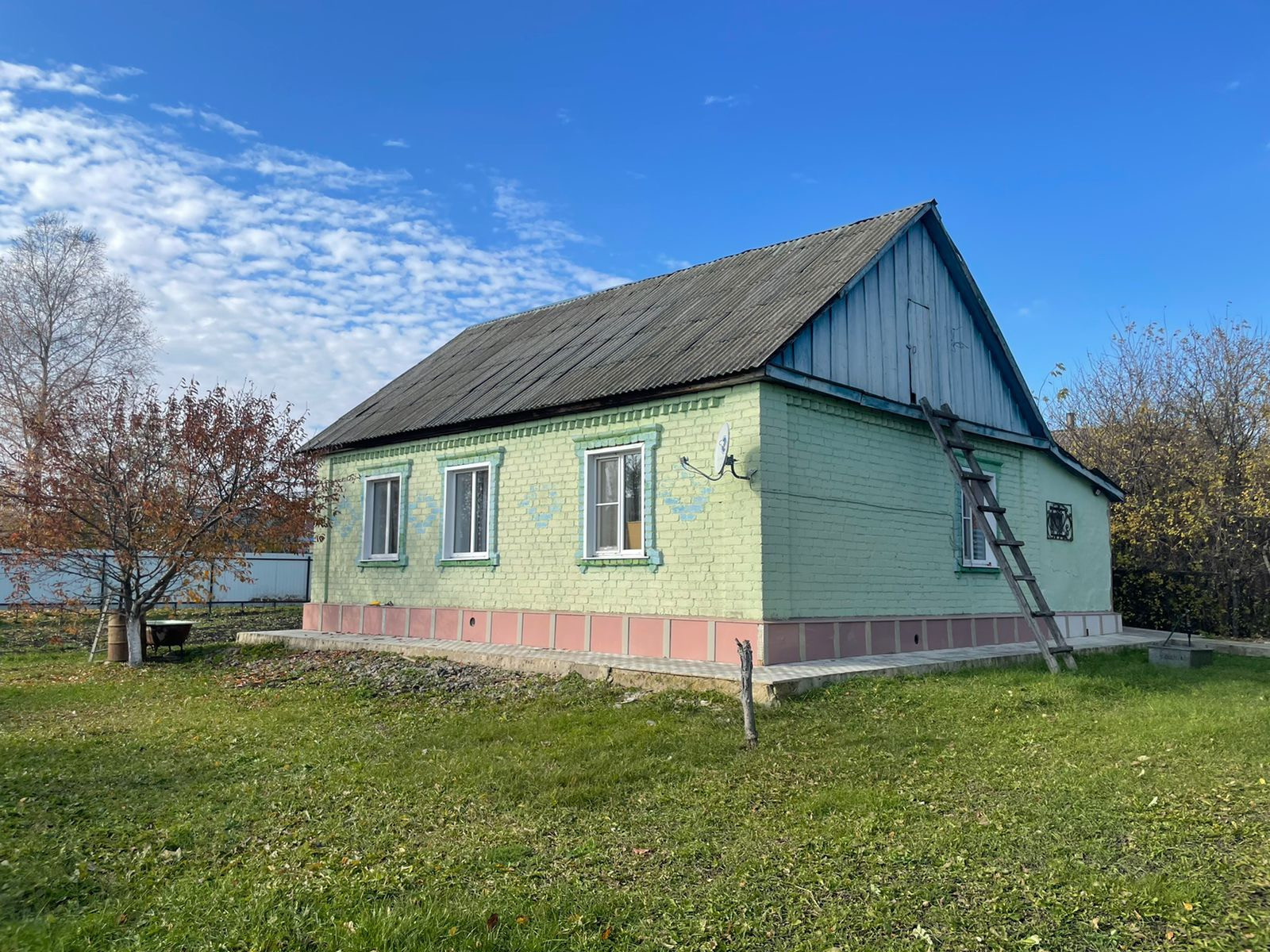 Дом расположен на участке  , общей площадью -12 соток. Периметр участка огорожен забором- металлопроф. Имеются трое ворот ( подъезд во двор, на участок и в гараж). Натерритории участка расположены: