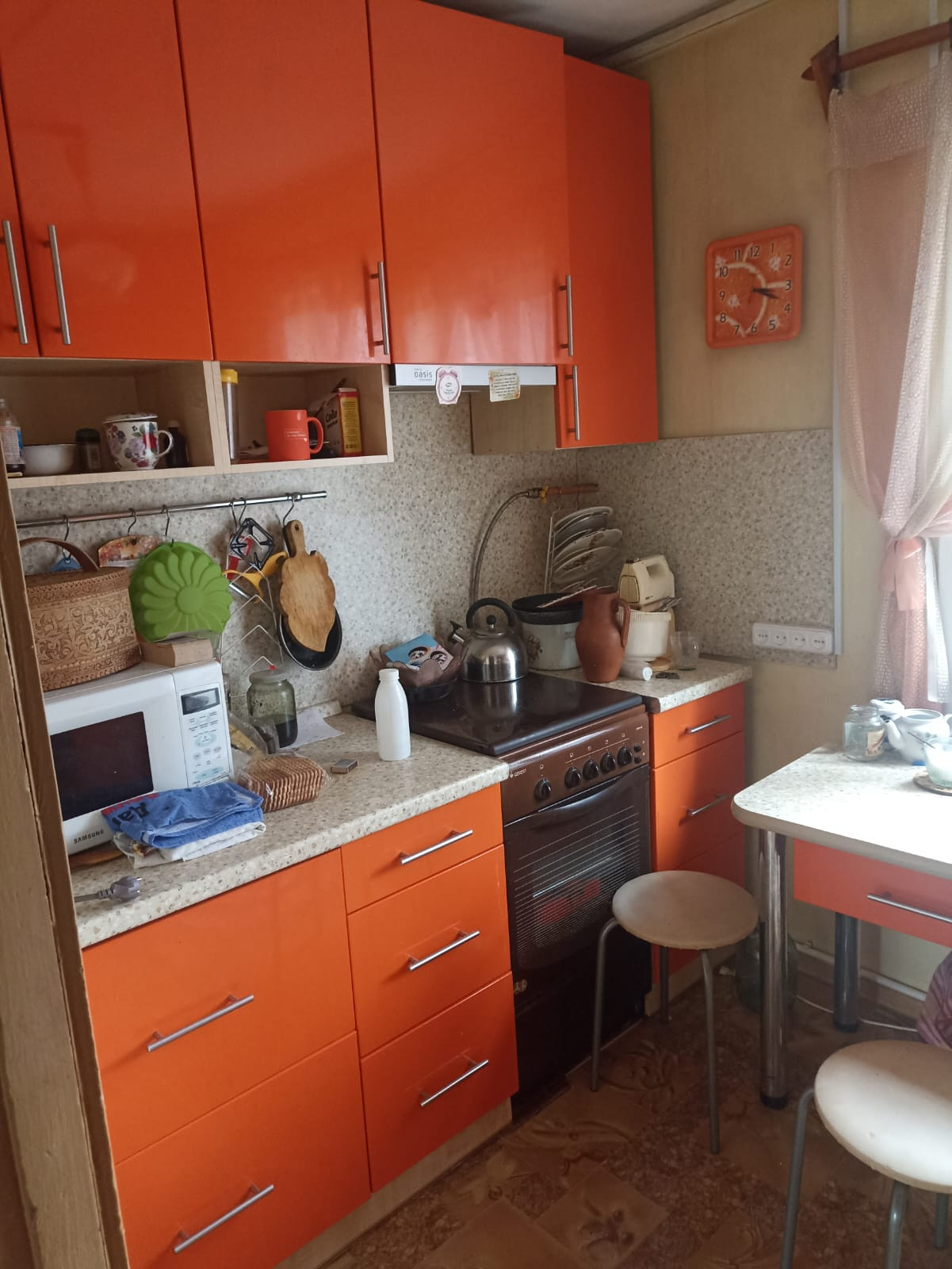 В квартире остается вся необходимая для жизни сантехника и мебель, в т.ч. новый кухонный гарнитур с вытяжкой.
