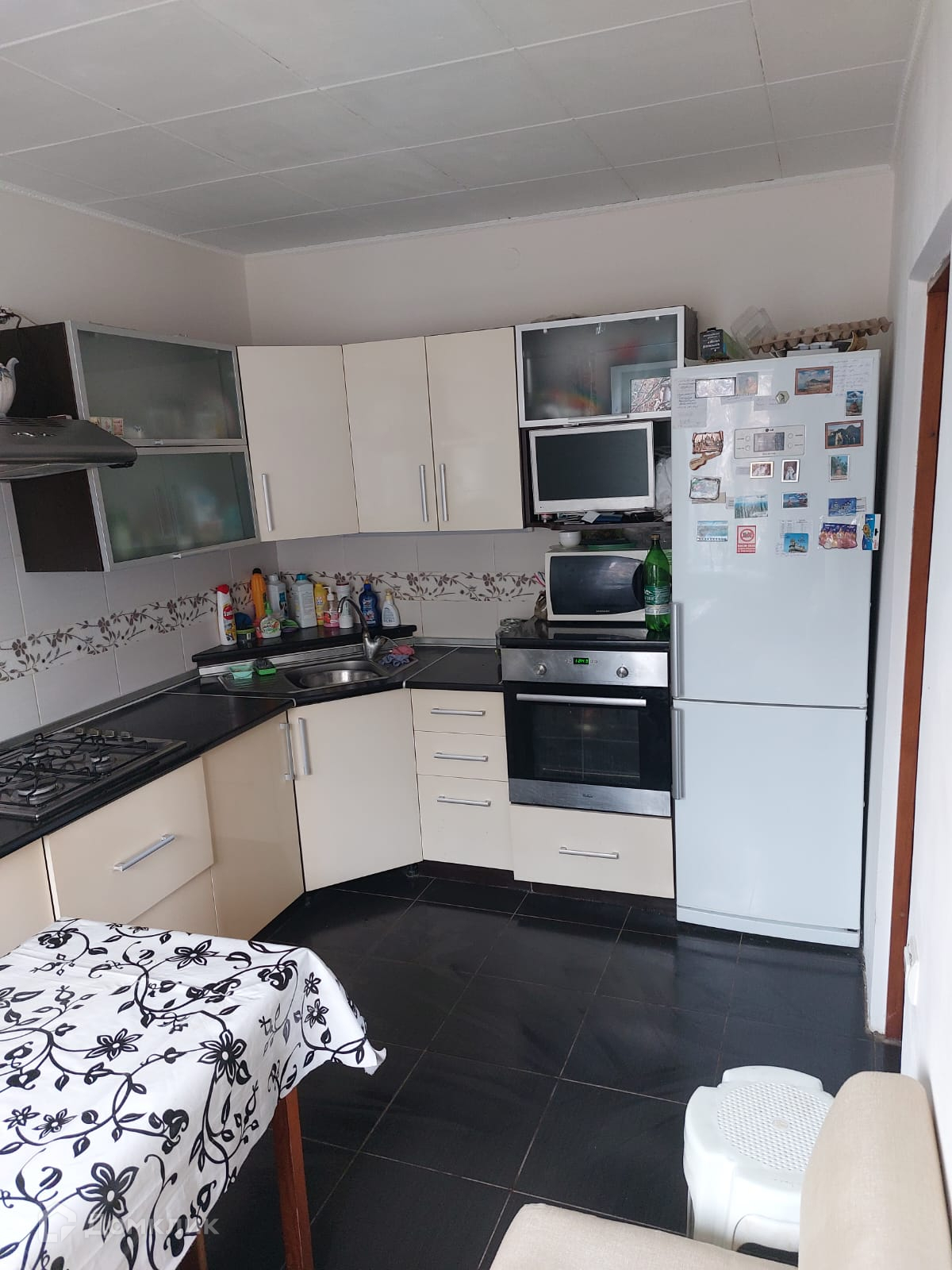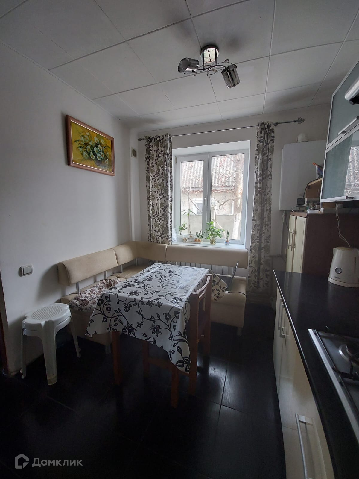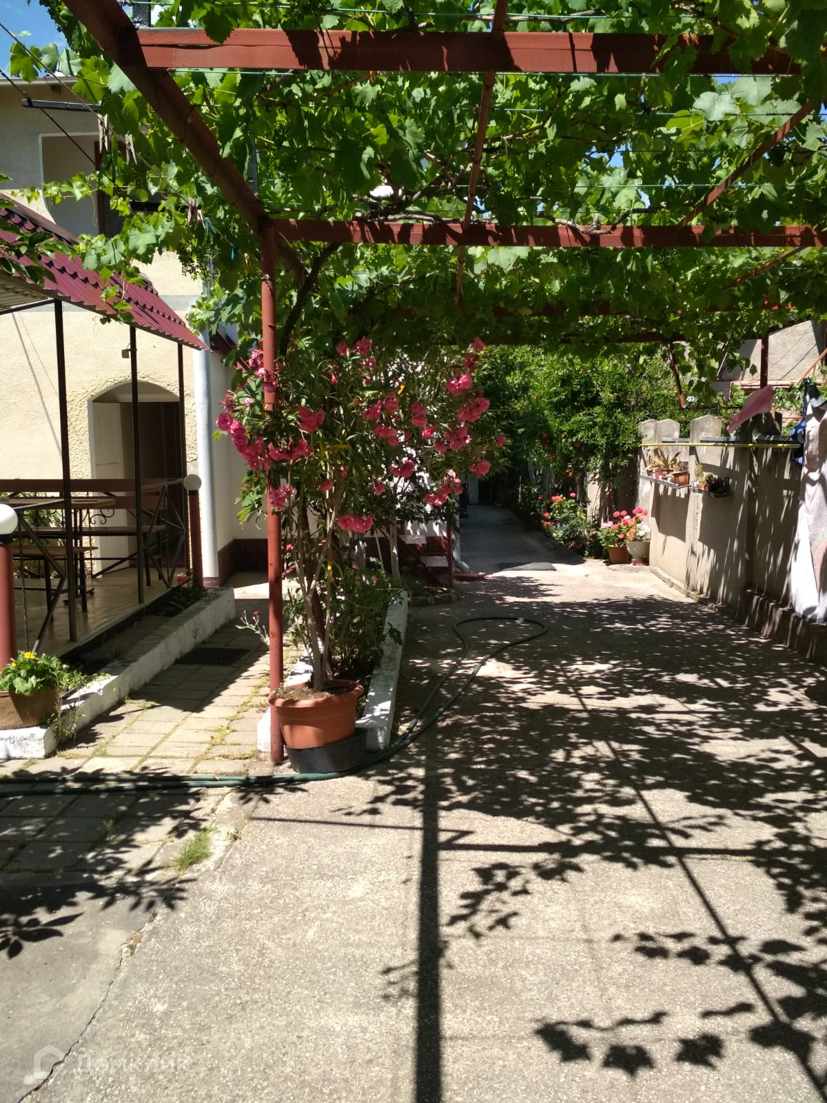 отдельная столовая 40 кв.м) Двор на два выхода, газ, индивидуальное отопление-двухконтурный котел,  трехфазный счетчик, центральный водопровод +свой колодец. Сад( виноград ,инжир,