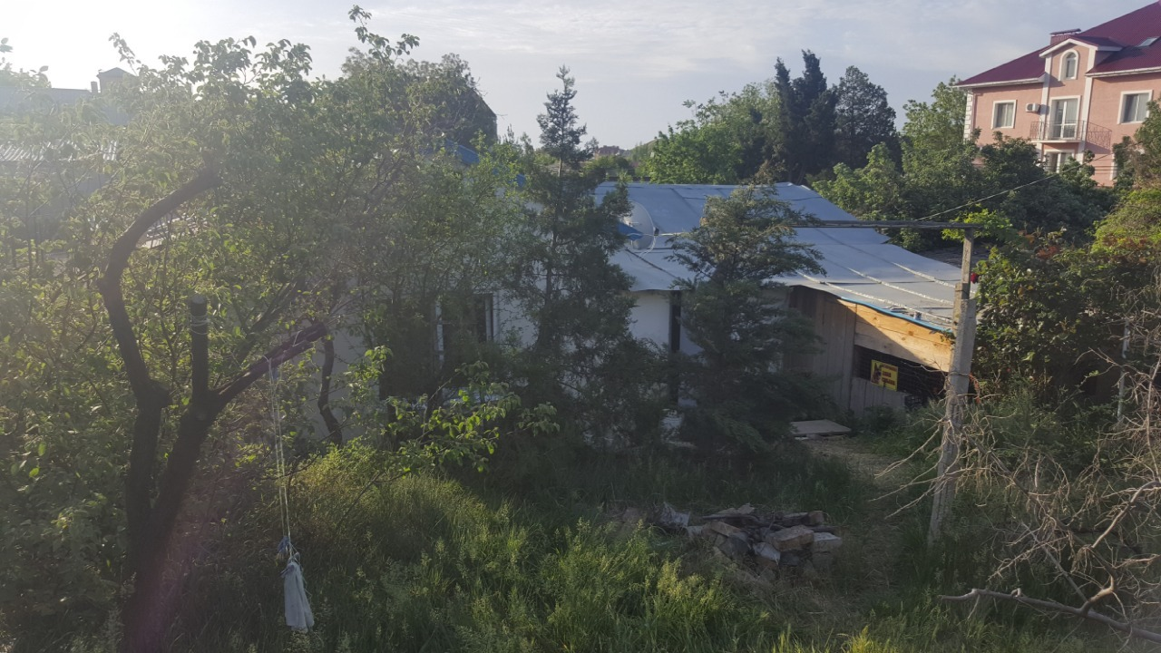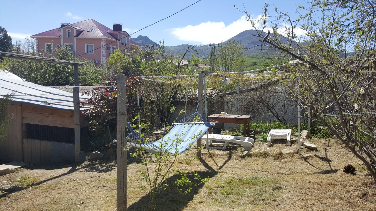 Дом площадью 42 кв.м. из трех комнат на участке богатом зелеными насаждениями с живописным видом на Кара-даг.  Дом требует ремонта, но пригоден для проживания.  Участок 4 сот в Коктебеле на ул. Жуковского-43А. Свет, центральное водоснабжение на участке, газ рядом (есть возможность подключения). Заложен фундамент по будущий дом площадью 55 кв.м.