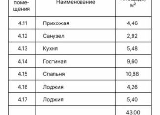 Продажа 1-комнатной квартиры, 43 м2