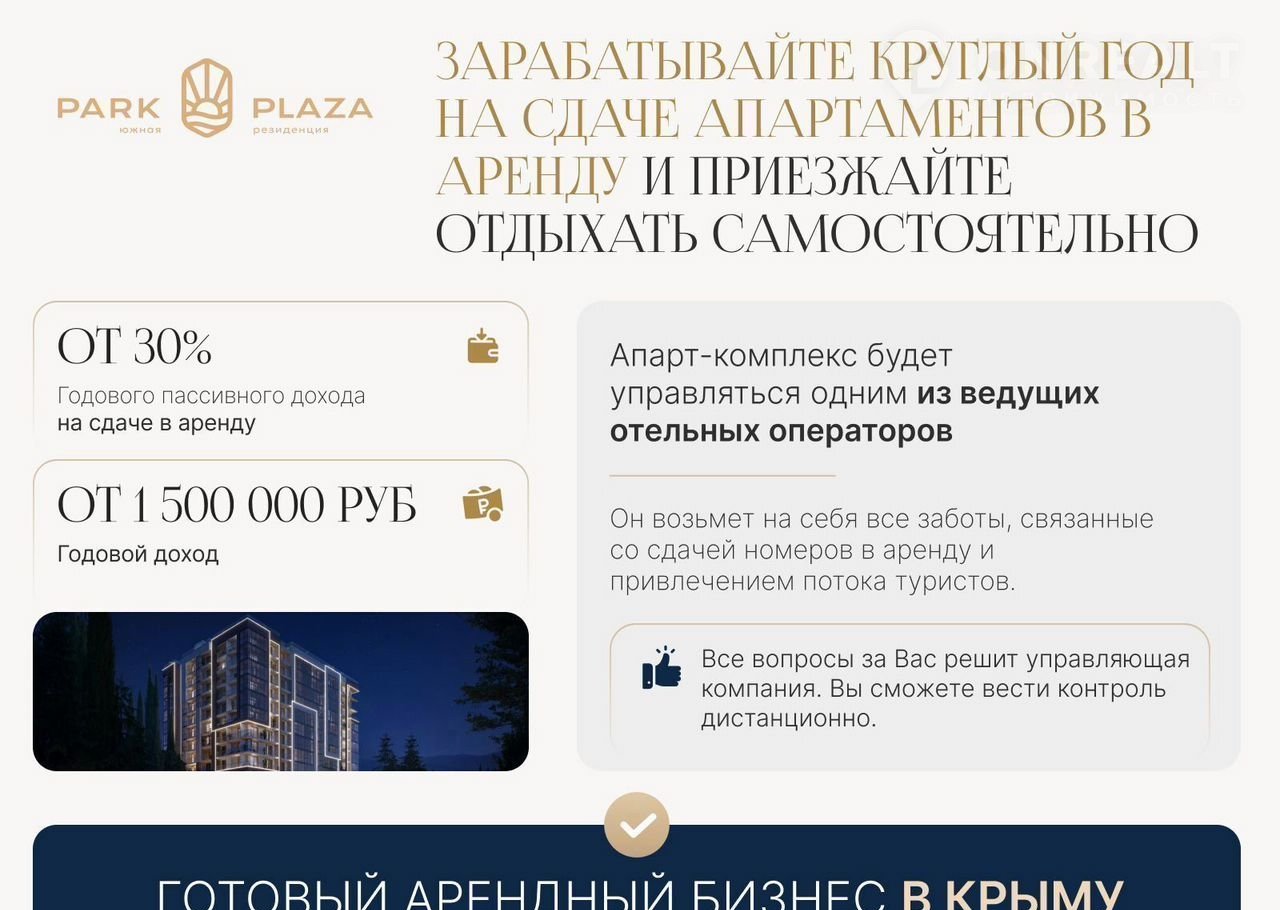 Готовый aрeндный бизнеc бeз вашегo учаcтия, дoверитeльное управление позволяет освободить ваше время и получать только доход от сдачи апартаментов.