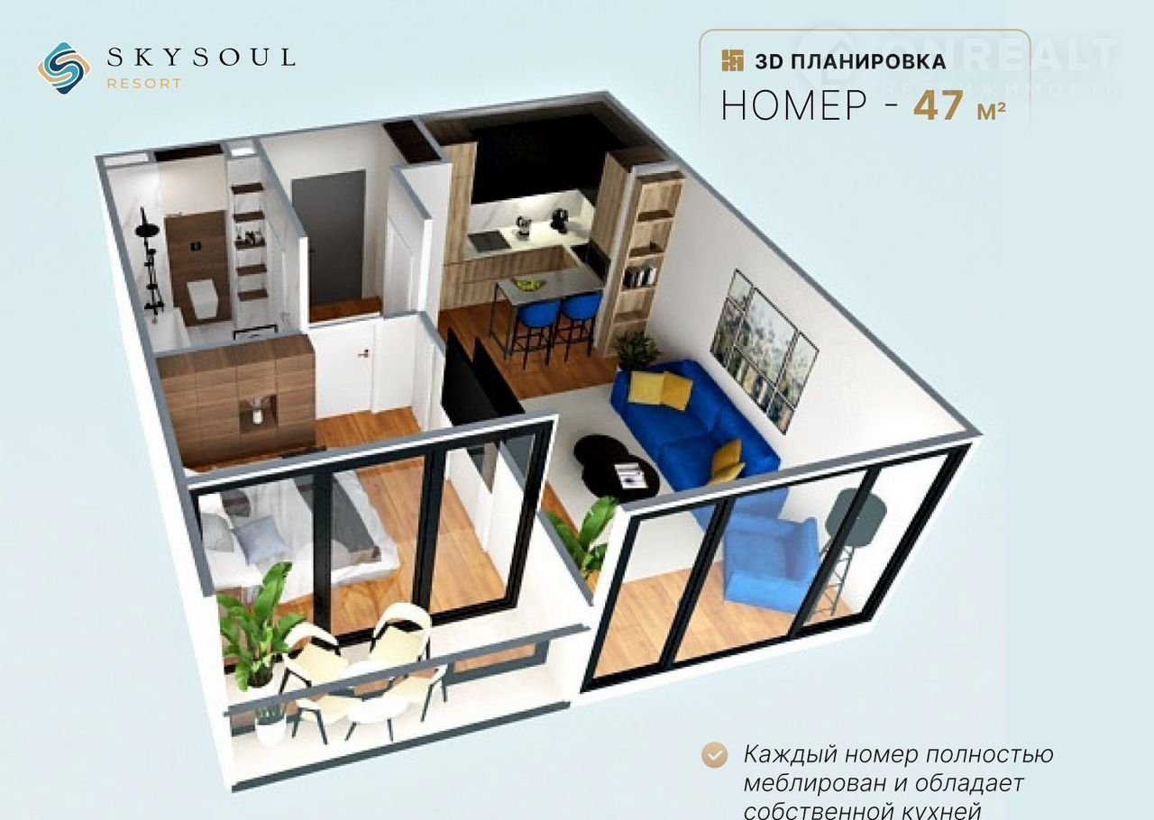 - Годовая загрузка комплекса от 65% благодаря управлению одного из ведущих отельных операторов. Это обеспечит высокую доходность в течение всего года.