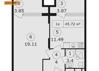 Продажа 1-ком. квартиры, 45.72 м2, Арматлукская улица, 2
