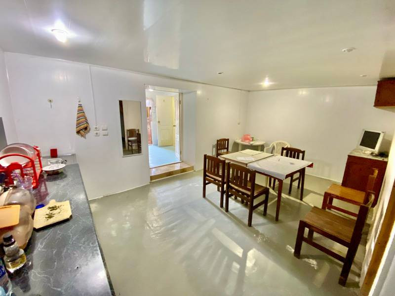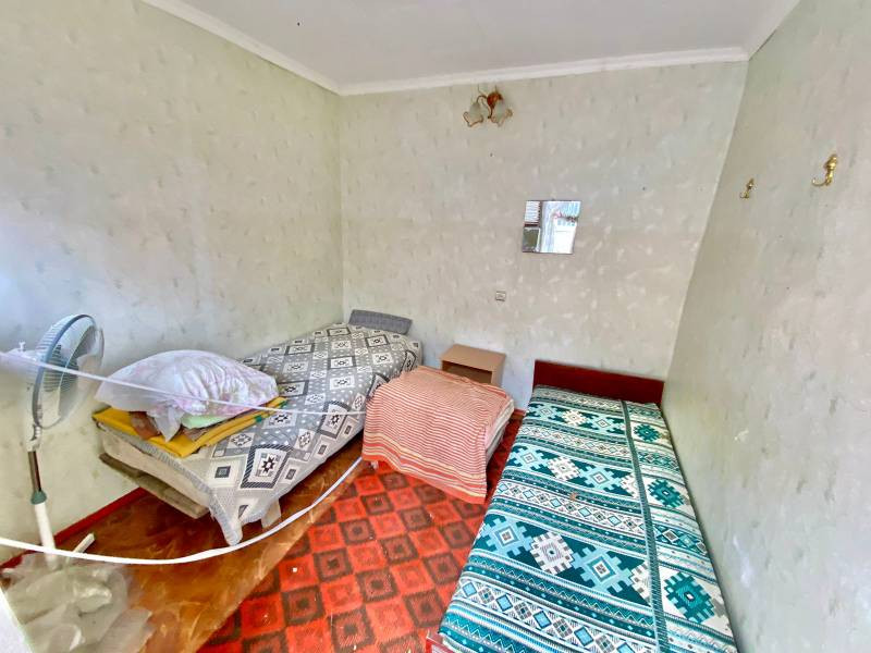 Расположение очень удобное, в 250 м. от Аквапарка, в 590 м. пляж. Рядом рынок и магазины. Из коммуникаций - электричество, вода. Канализация - септик. Газ проходит по границе участка.  Возможно купить как участок, строения под снос и выстроить новый домик для отдыха.