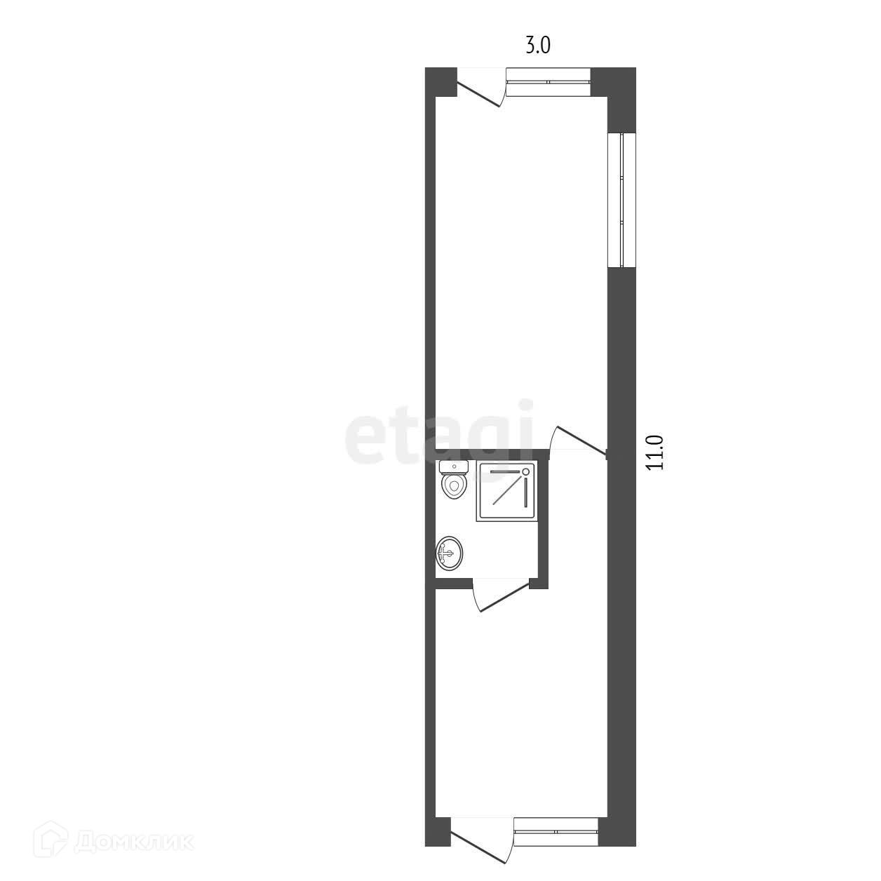 Жилое помещение находится на первом этаже на два выхода. Состоит из двух комнат свободной планировки с совмещенным санузлом.