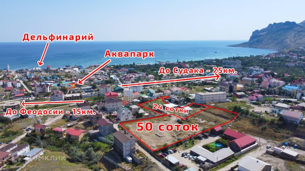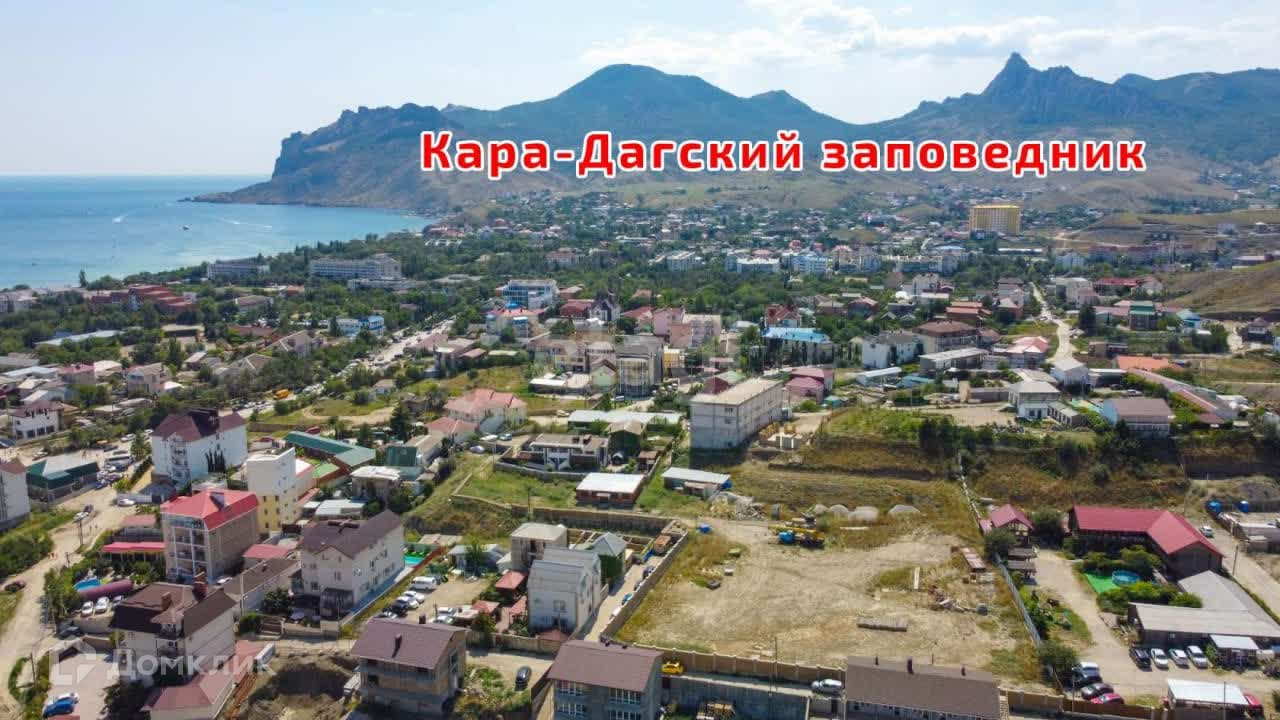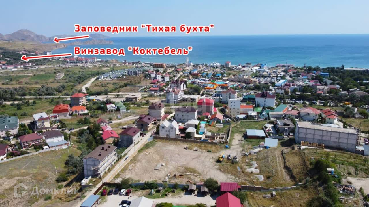 Участок находится в одном из развивающихся районах пгт Коктебель. С участка открывается шикарный вид на Коктебельский залив, мыс Хамелеон, аквапарк.